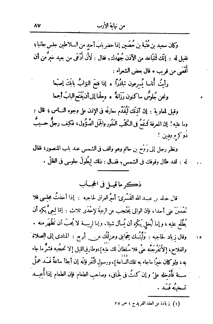 [1] زيادة عن العقد الفريد ج 1 ص 27