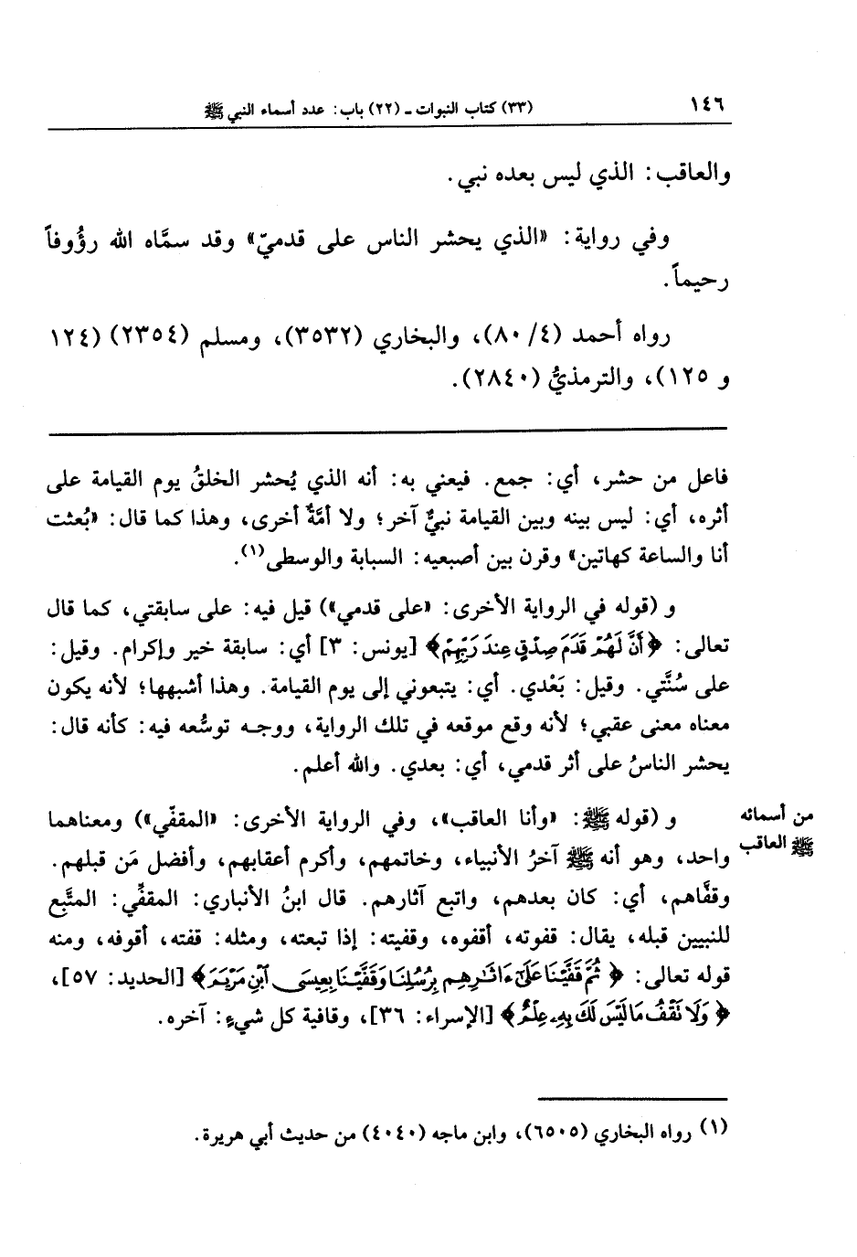 وَالعَاقِبُ الَّذِي لَيسَ بَعدَهُ نَبِيٌّ.