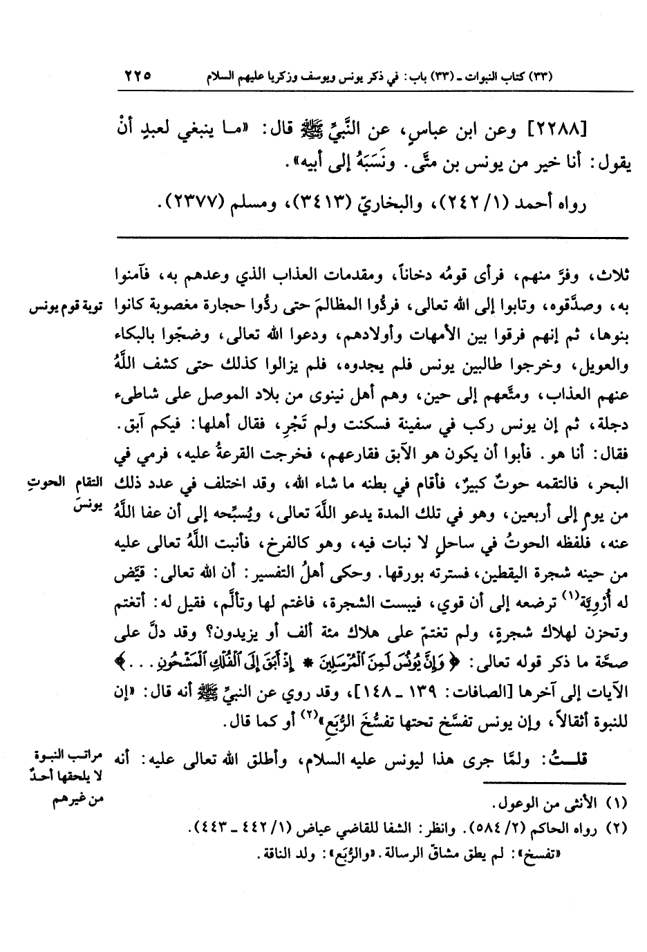 [2288] وعن ابنَ عَبَّاسٍ، عَن النَّبِيِّ صَلَّى اللَّهُ عَلَيهِ وَسَلَّمَ قَالَ: مَا يَنبَغِي لِعَبدٍ أَن يَقُولَ: أَنَا خَيرٌ مِن يُونُسَ بنِ مَتَّى. وَنَسَبَهُ إِلَى أَبِيهِ.
