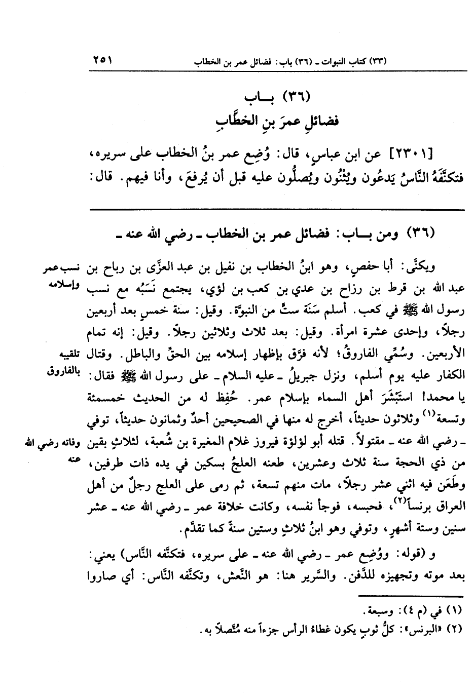 (36) ومن باب فضائل عمر بن الخطاب رضي الله عنه