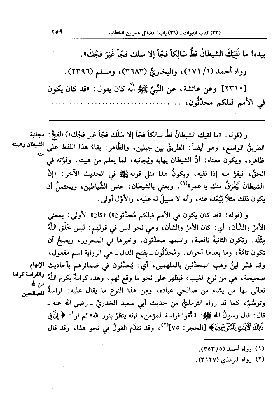 [2310] وعَن عَائِشَةَ عَن النَّبِيِّ صَلَّى اللَّهُ عَلَيهِ وَسَلَّمَ أَنَّهُ كَانَ يَقُولُ: قَد كَانَ يَكُونُ فِي الأُمَمِ قَبلَكُم مُحَدَّثُونَ،