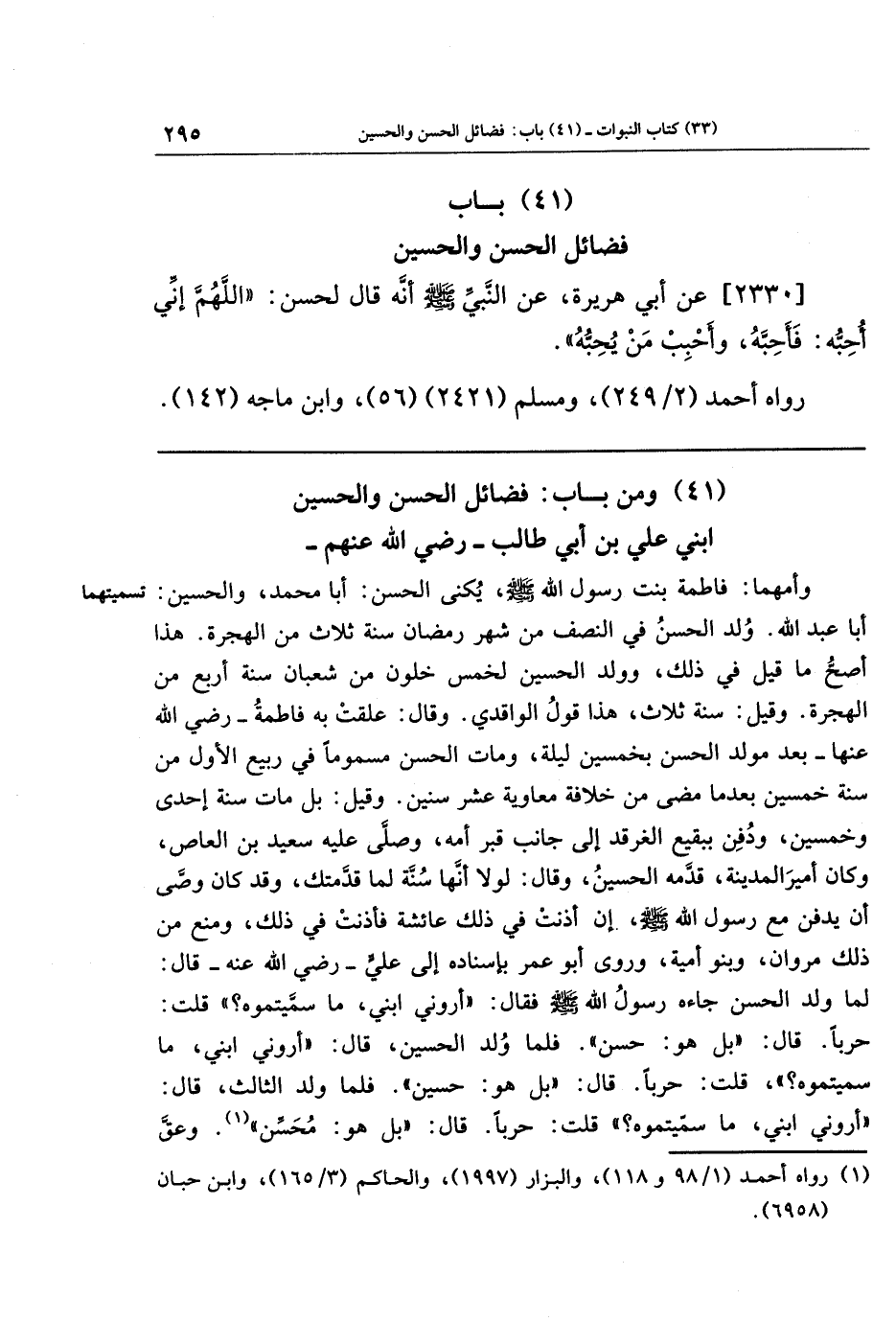 (41) ومن باب: فضائل الحسن والحسين ابني علي بن أبي طالب - رضي الله عنهم -