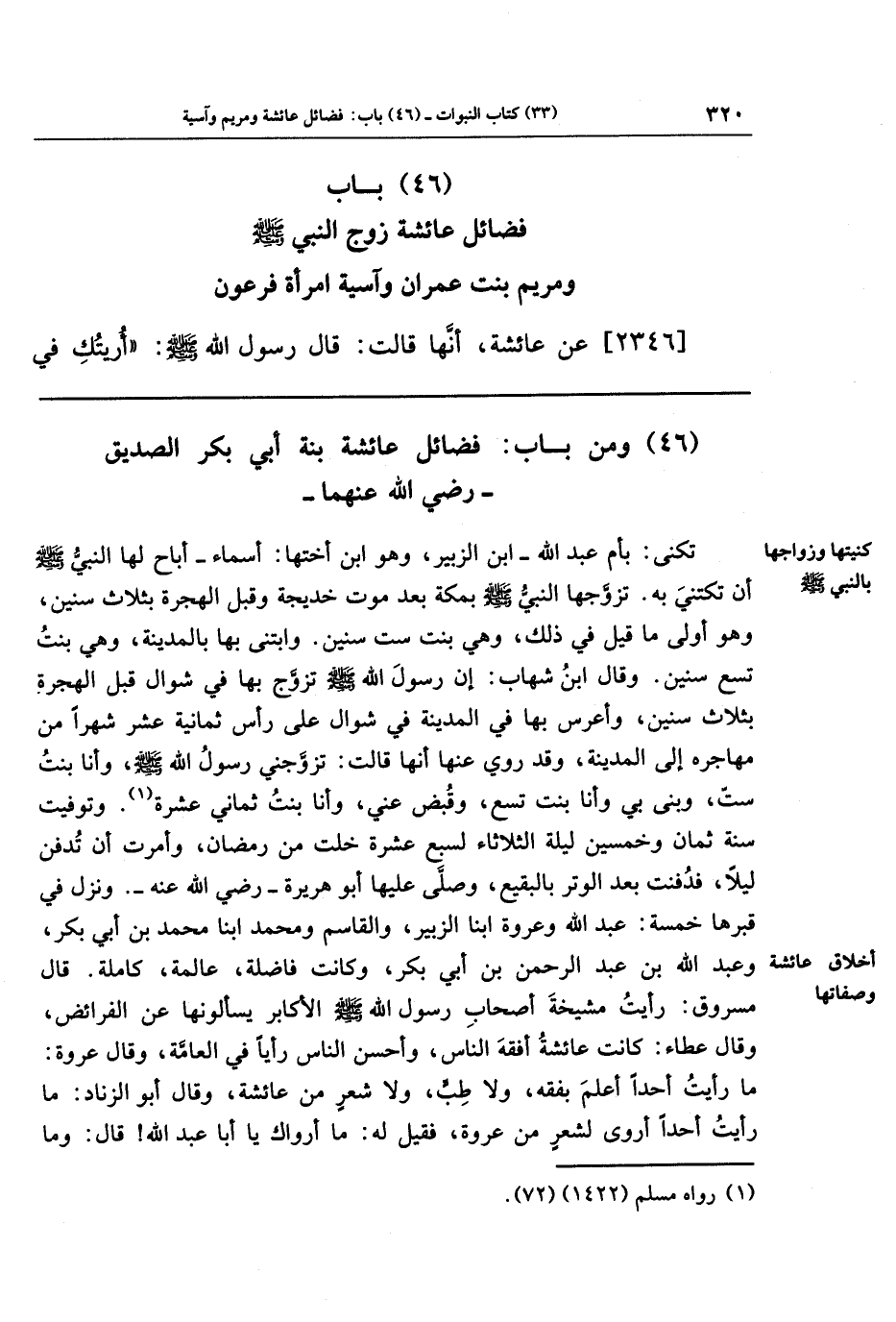 (46) ومن باب فضائل عائشة بنة أبي بكر الصديق - رضي الله عنهما -