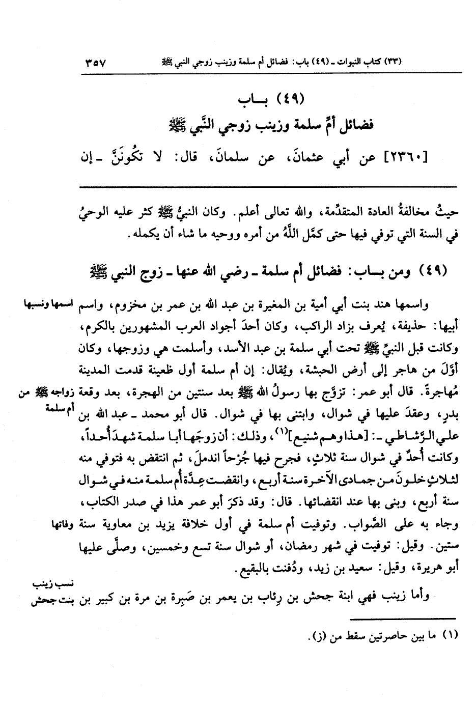 (49) باب فضائل أم سلمة وزينب زوجي النبي صلى الله عليه وسلم