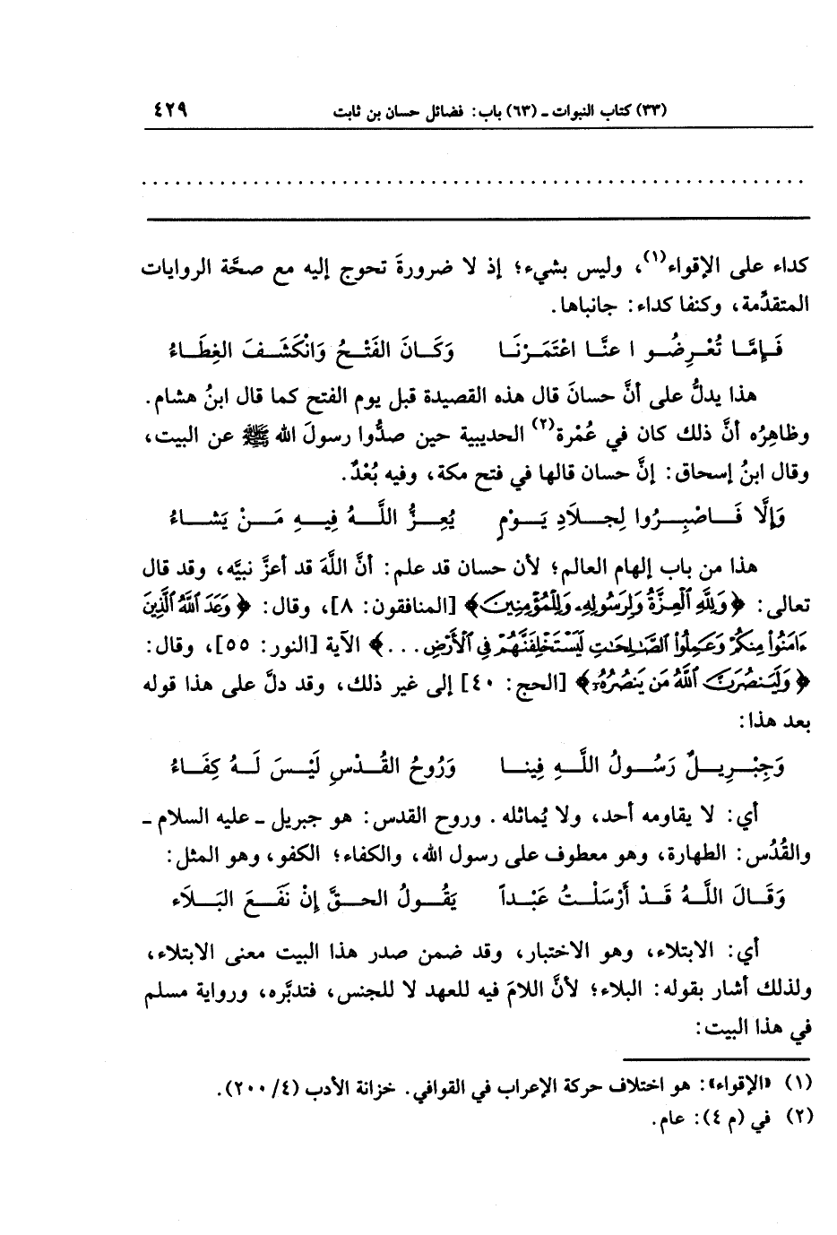 (¬1) "الإقواء": هو اختلاف حركة الإعراب في القوافي. خزانة الأدب (4/ 200).