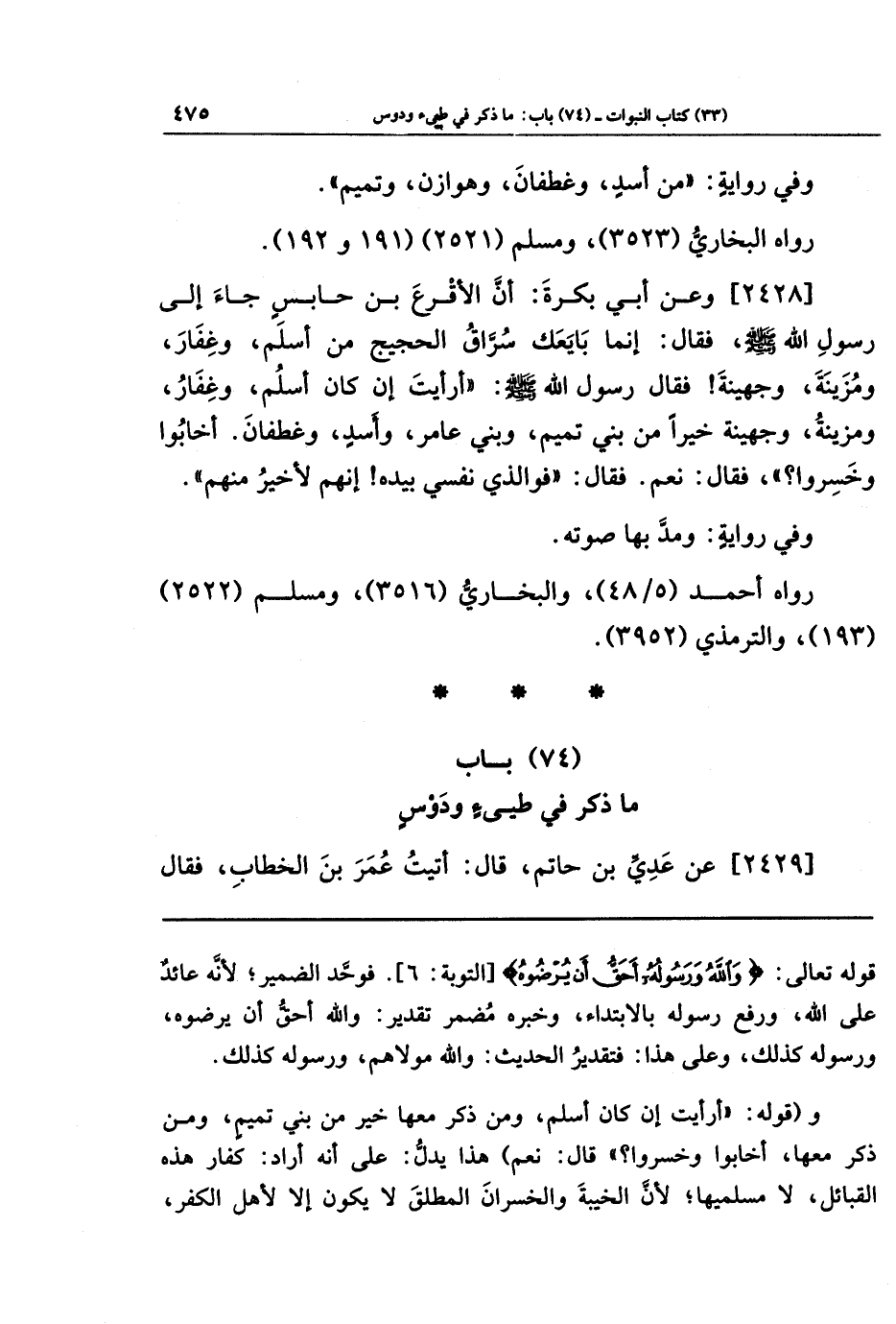 (74) باب ما ذكر في طيئ ودوس