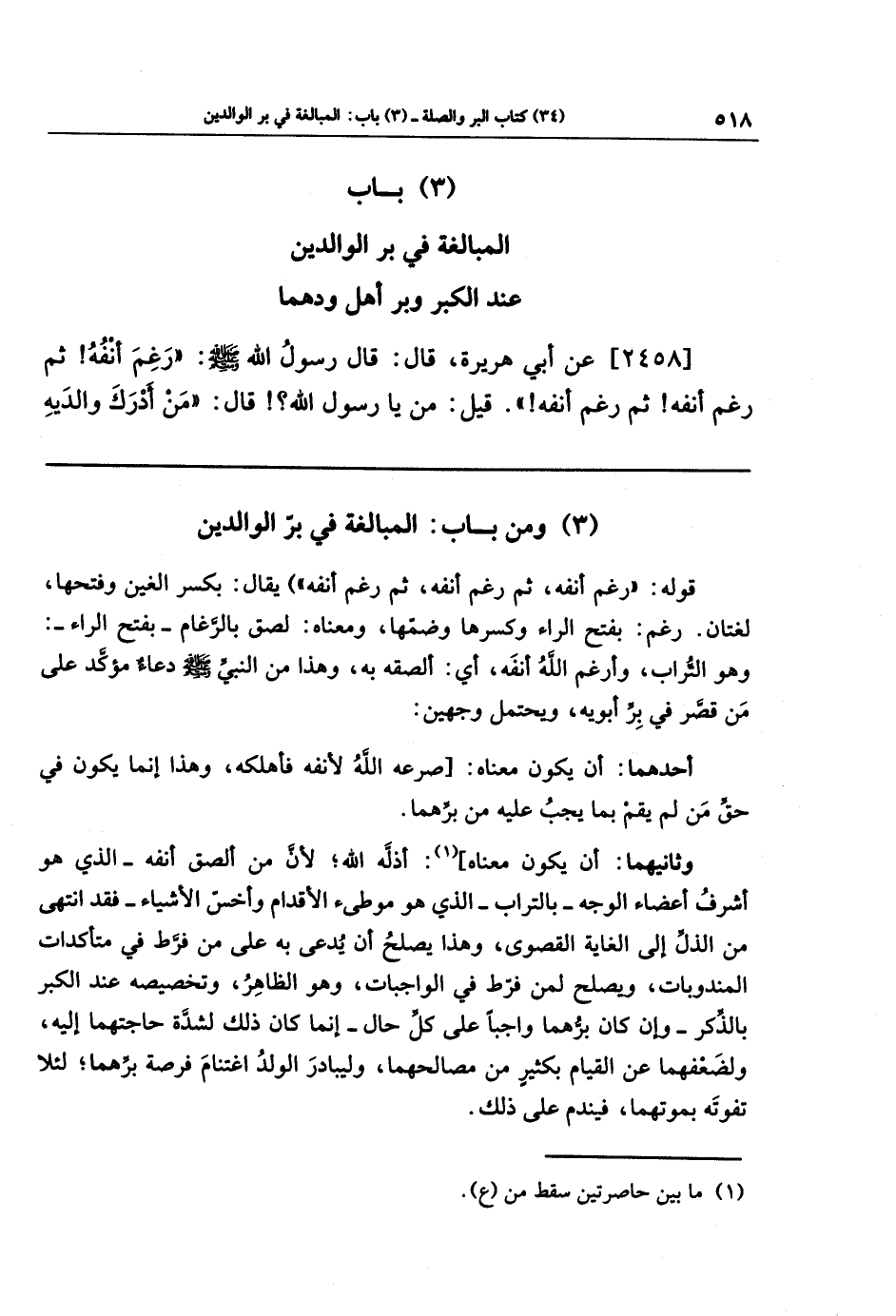 (3) ومن باب: المبالغة في بر الوالدين
