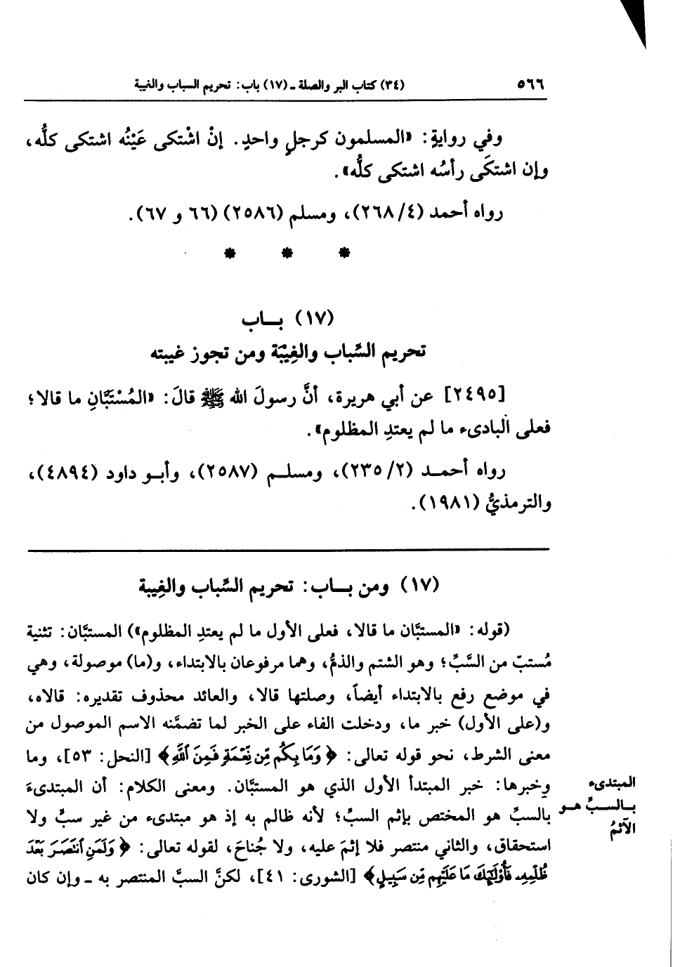 (17) ومن باب: تحريم السباب والغيبة