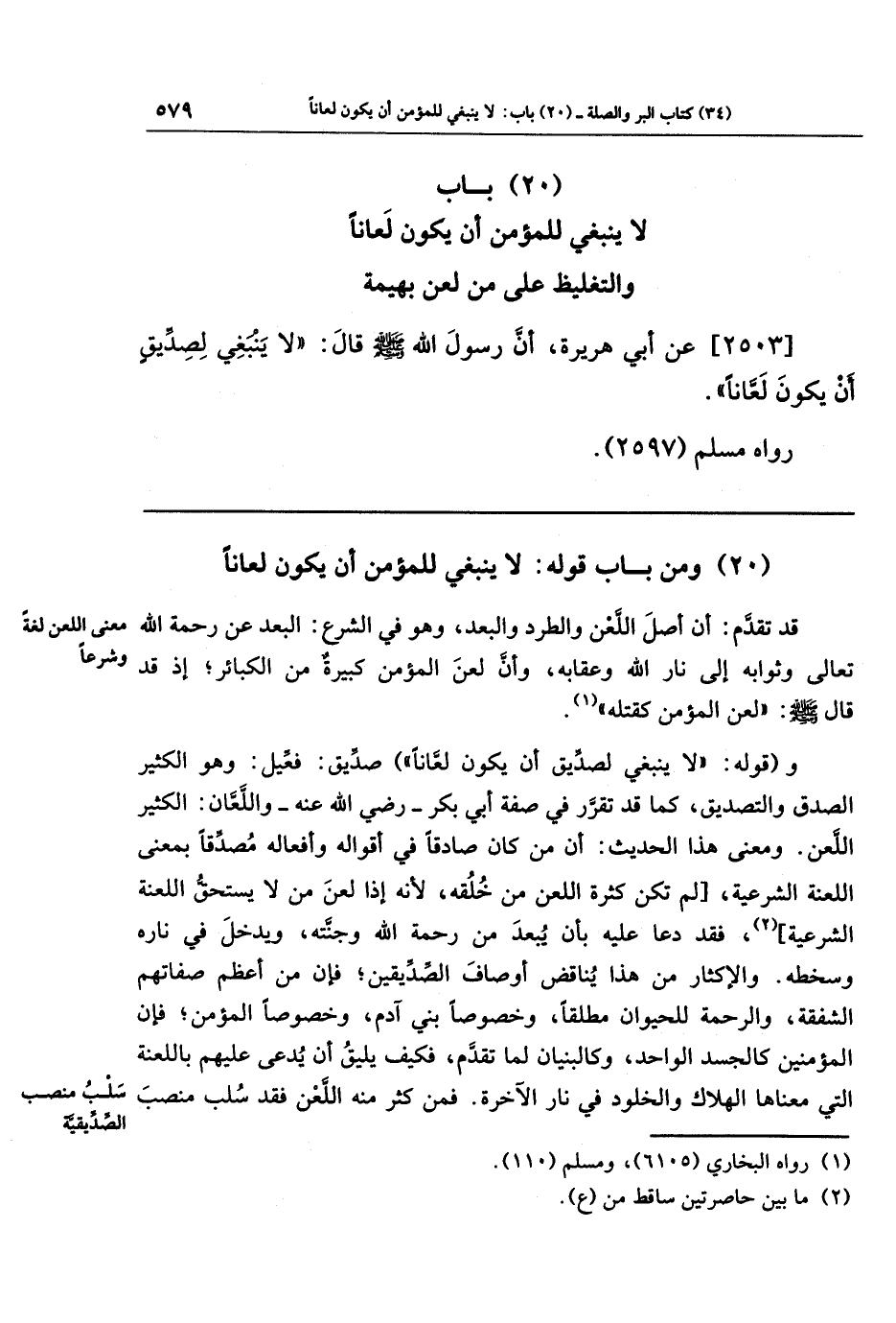 (20) ومن باب قوله: لا ينبغي للمؤمن أن يكون لعانا