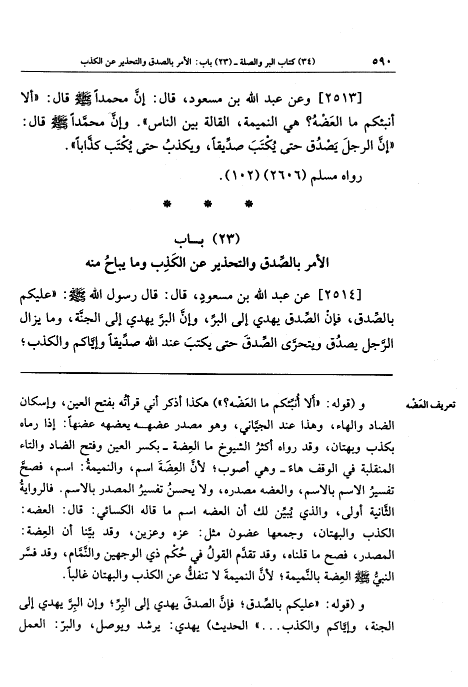 (23) باب الأمر بالصدق والتحذير عن الكذب وما يباح منه
