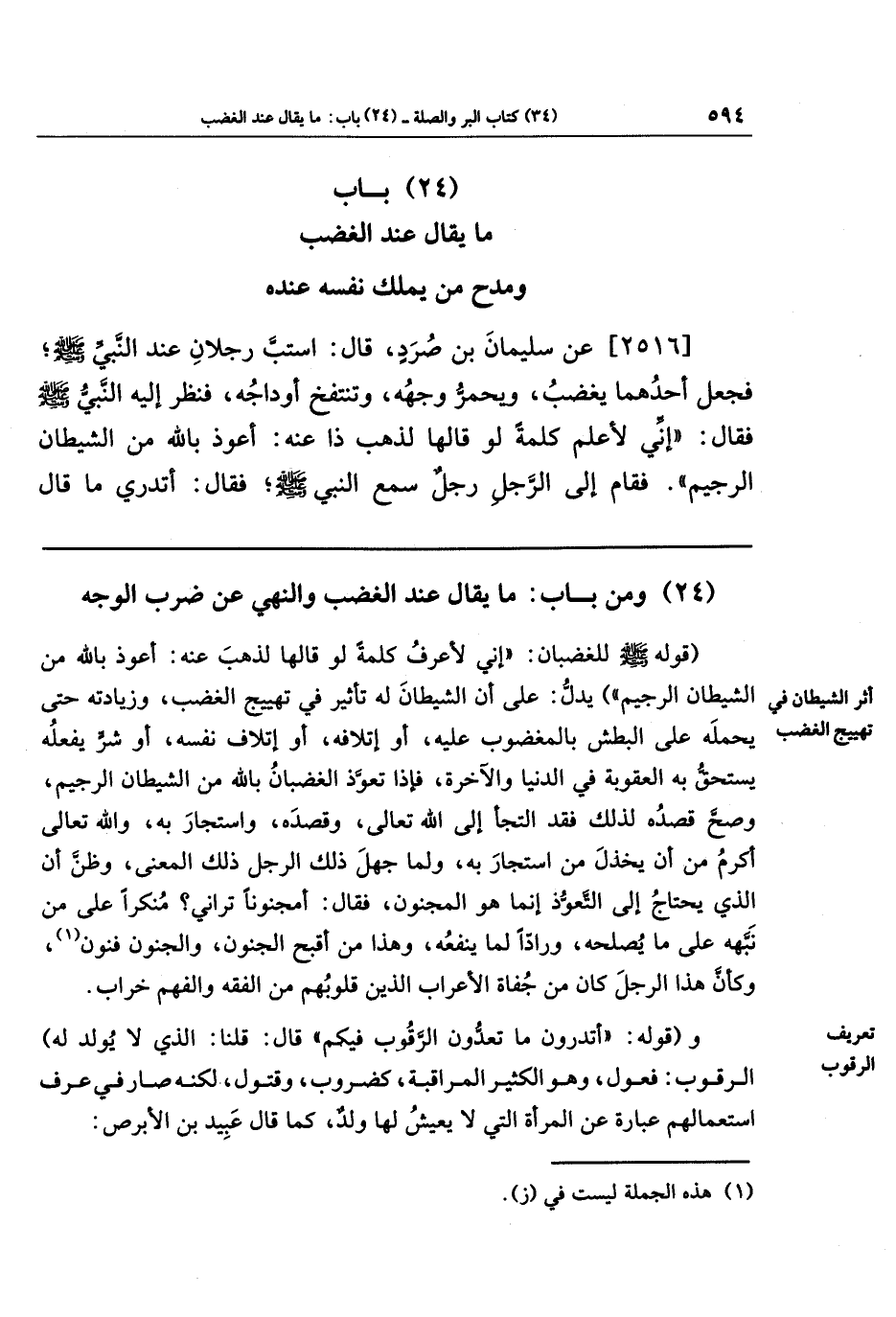 (24) باب ما يقال عند الغضب ومدح من يملك نفسه عنده