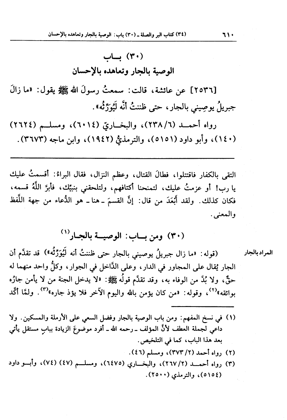 (30) باب الوصية بالجار وتعاهده بالإحسان