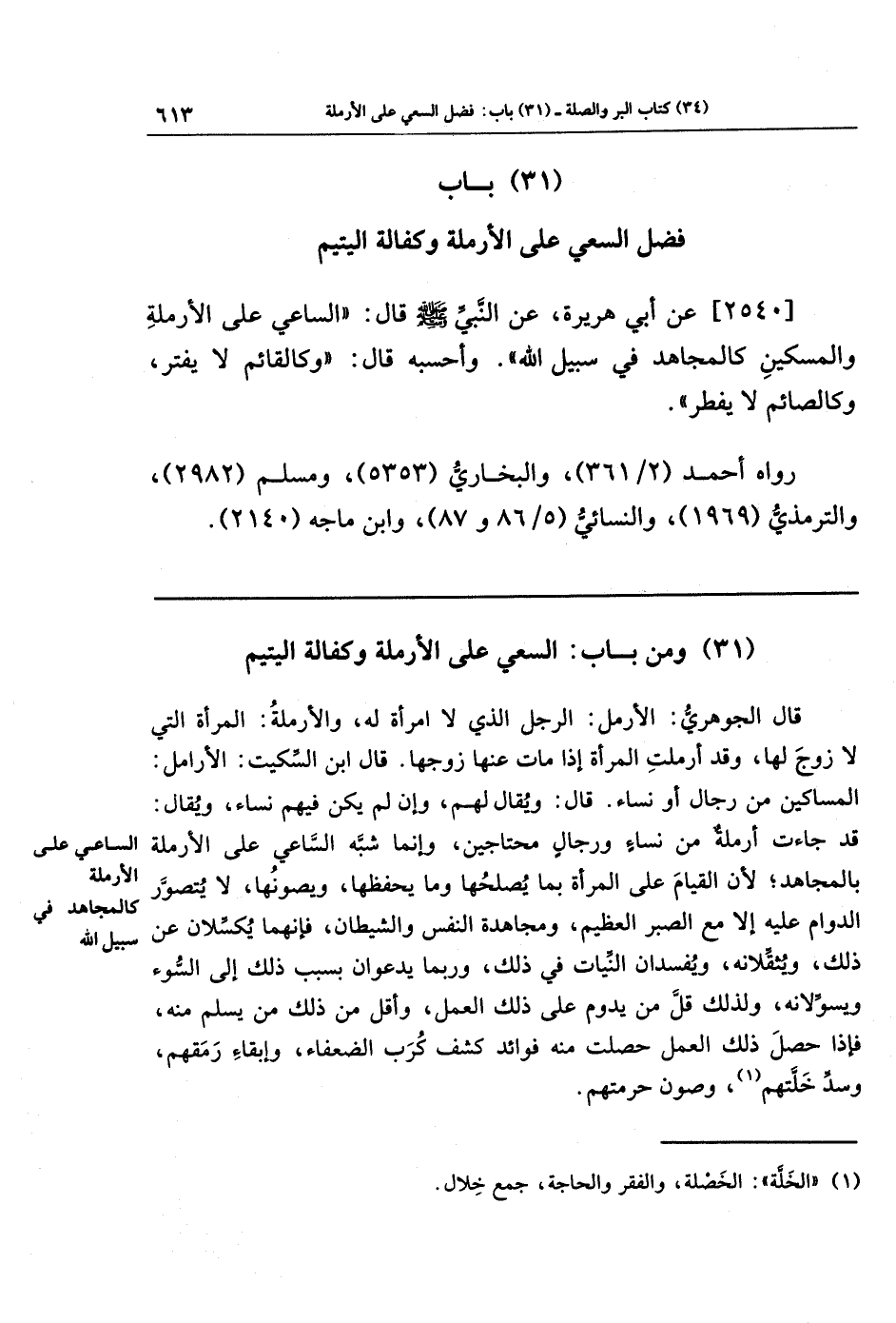 (31) ومن باب: السعي على الأرملة وكفالة اليتيم