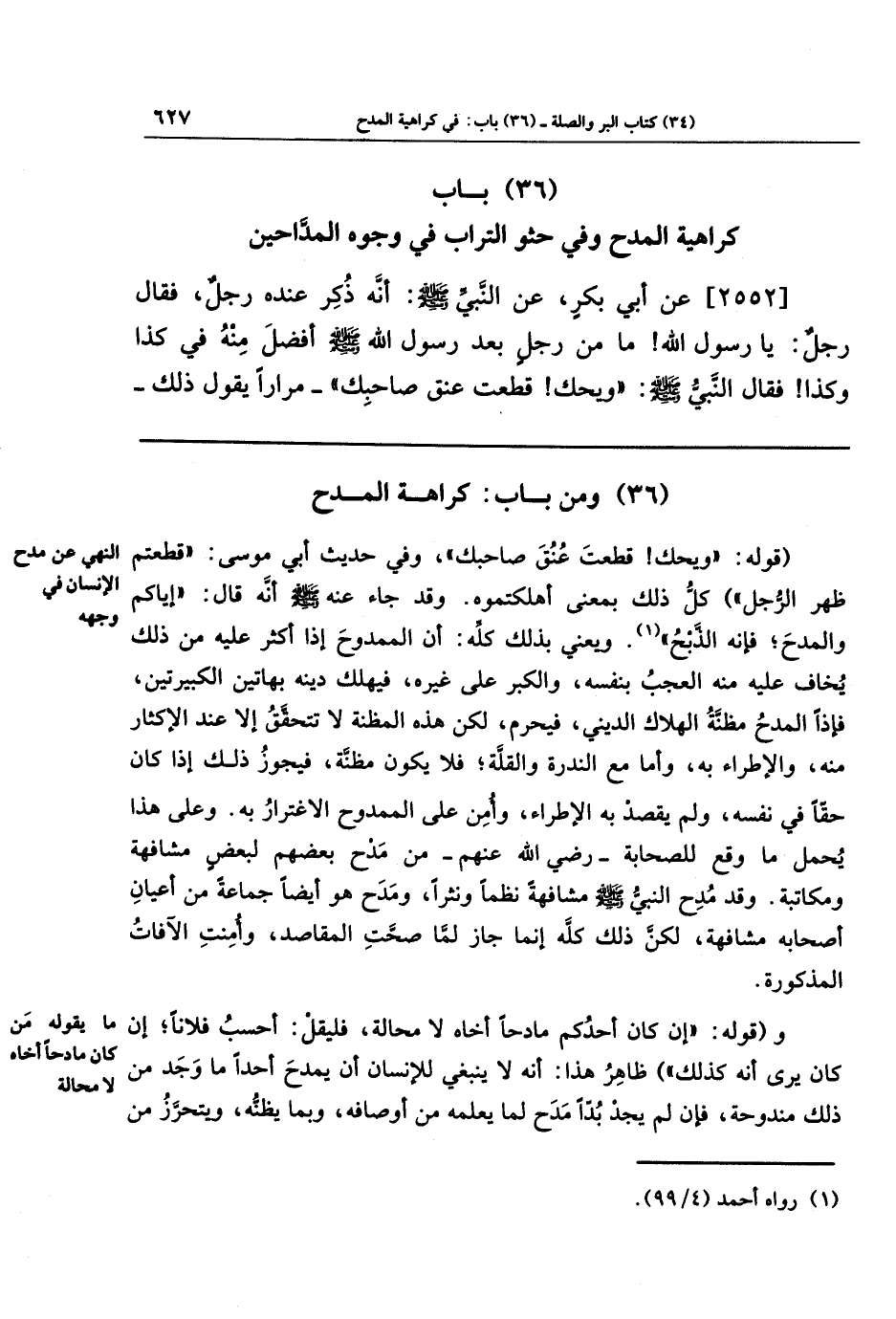 (36) باب كراهية المدح وفي حثو التراب في وجوه المداحين