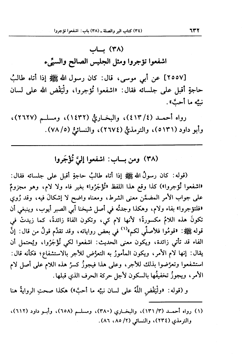 (38) ومن باب: اشفعوا إلي تؤجروا
