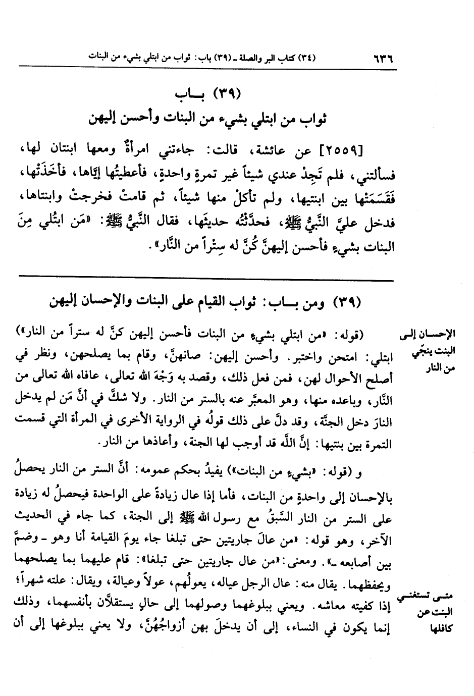 (39) ومن باب: ثواب القيام على البنات والإحسان إليهن