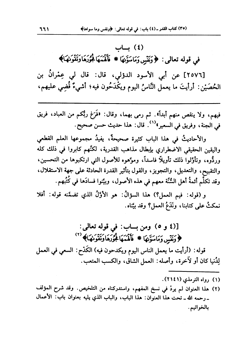 (4) باب في قوله تعالى: {وَنَفسٍ وَمَا سَوَّاهَا * فَأَلهَمَهَا فُجُورَهَا وَتَقوَاهَا}