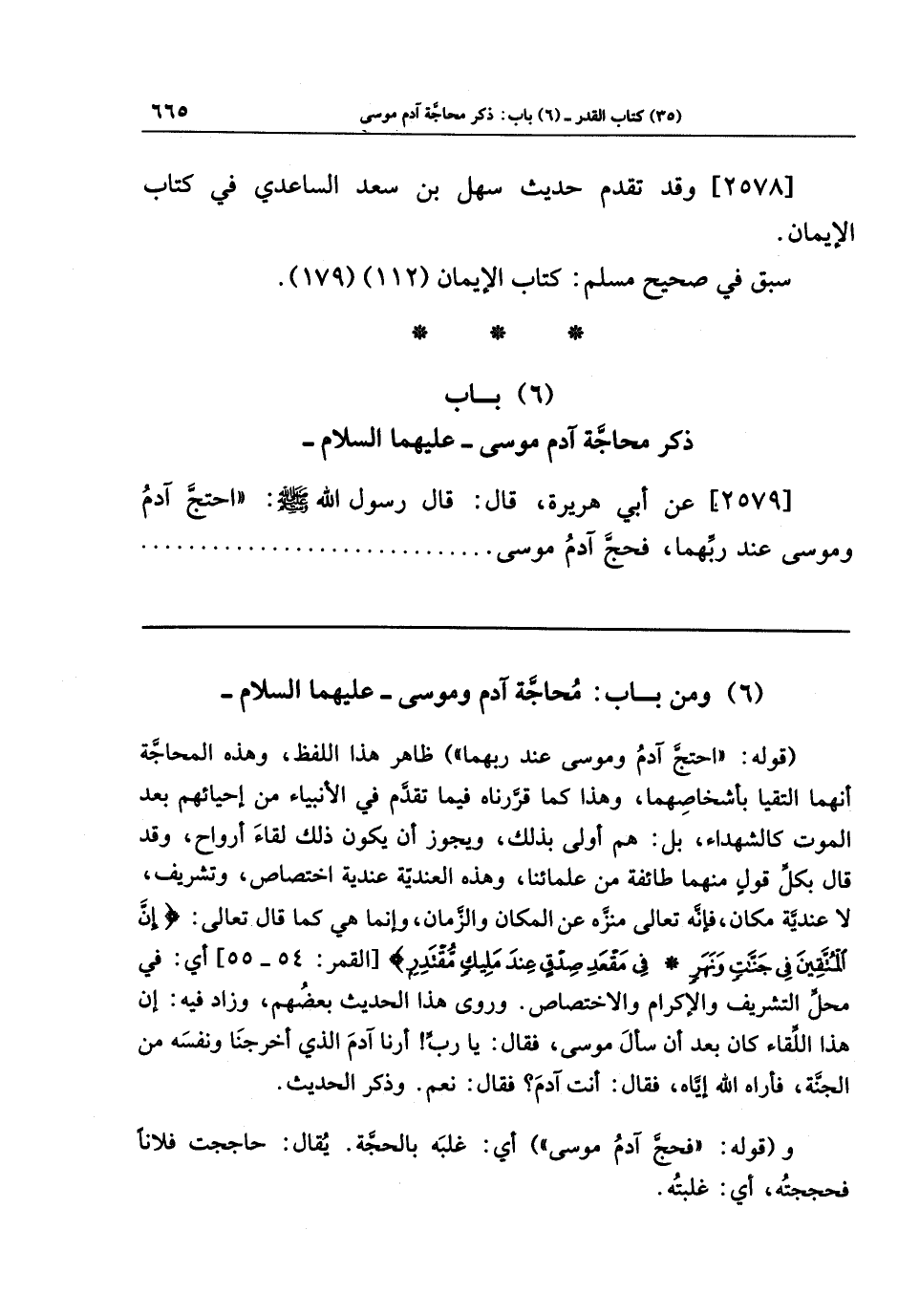 (6) ومن باب: محاجة آدم وموسى، عليهما السلام