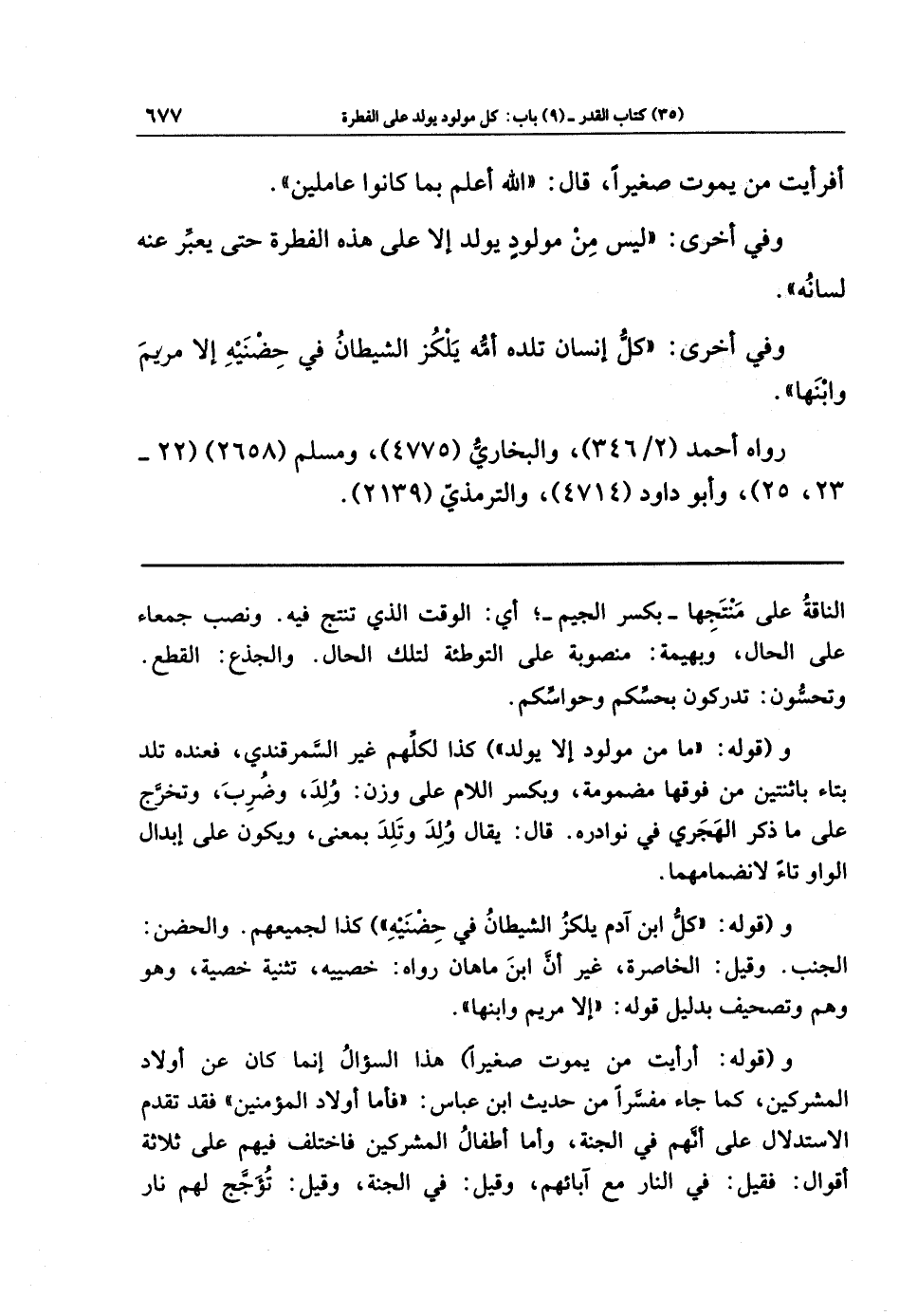 وفي أخرى: لَيسَ مِن مَولُودٍ يُولَدُ إِلَّا عَلَى هَذِهِ الفِطرَةِ حَتَّى يُعَبِّرَ عَنهُ لِسَانُهُ.