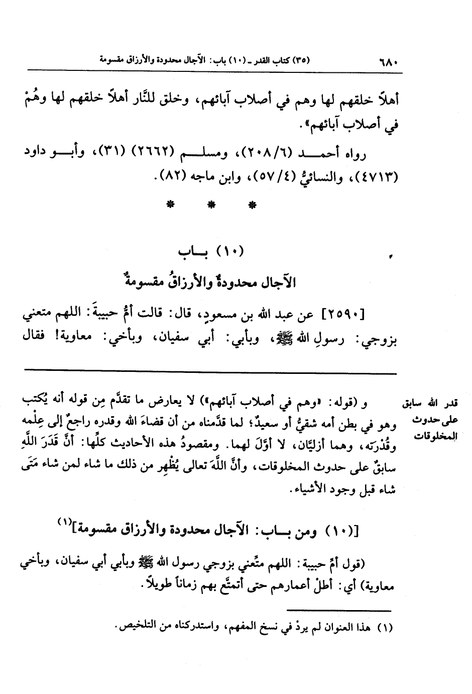 (10) باب الآجال محدودة والأرزاق مقسومة