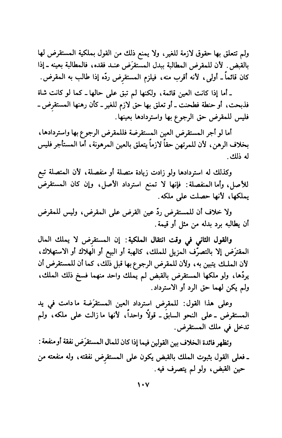 ولم تتعلق بها حقوق لازمة للغير، ولا يمنع ذلك من القول بملكية المستقرض لها بالقبض. لأن للمقرض المطالبة ببدل المستقرَض عند فقده، فالمطالبة بعينه - إذا كان قائماً - أولى، لأنه أقرب منه، فيلزم المستقرض رده إذا طالب به المقرض.