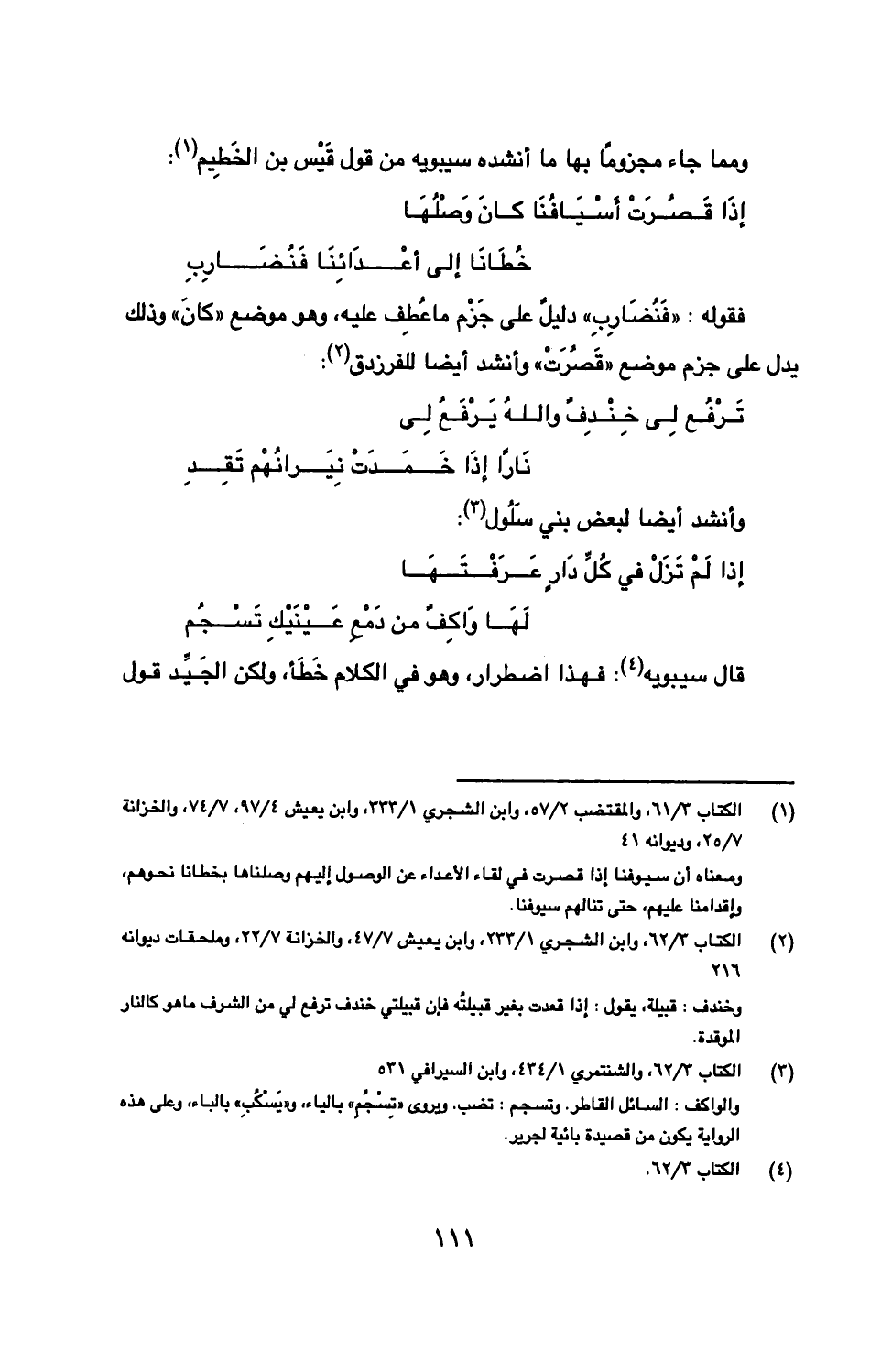 قال سيبويه: فهذا اضطرار، وهو في الكلام خطأ، ولكن الجيد قول