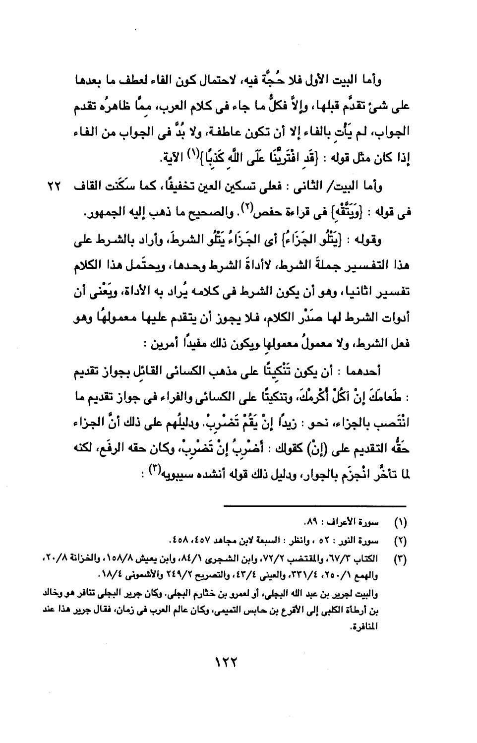 وأما البيت الأول فلا حجة فيه، لاحتمال كون الفاء لعطف ما بعدها على شيء تقدم قبلها، وإلا فكل ما جاء في كلام العرب، مما ظاهره تقدم الجواب، لم يأت بالفاء إلا أن تكون عاطفة، ولا بد في الجواب من لافاء إذا كان مثل قوله: } قد افترينا على الله كذبا} الآية.