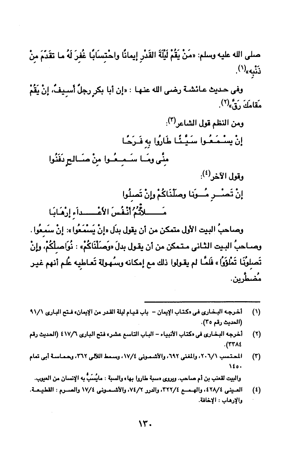 وصاحب البيت الأول متمكن من أن يقول بدل "إن يسمعوا": إن سمعوا. وصاحب البيت الثاني متمكن من أن يقول بدل "وصلناكم": نواصلكم، وإن تصلونا تملؤوا" فلما لم يقولوا ذلك مع إمكانه وسهولة تعاطيه علم أنهم غير مضطرين.