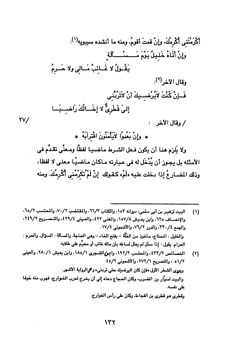 أكرمتني أكرمك، وإن قمت أقوم، ومنه ما أنشده سيبويه: