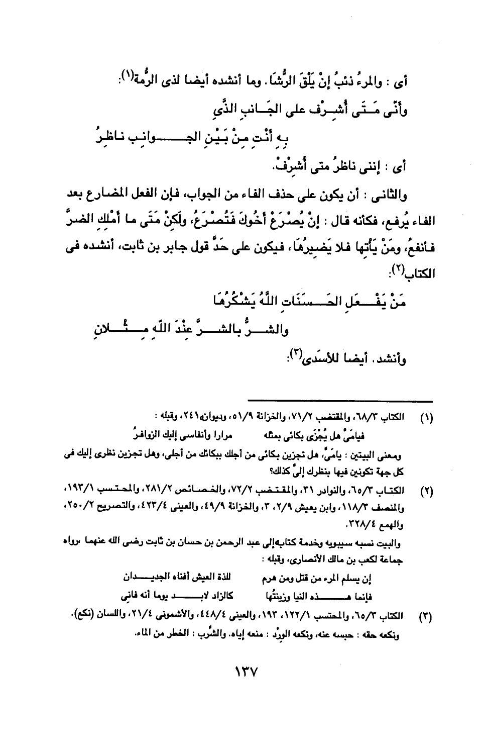 والثاني: أن يكون على حذف الفاء من الجواب، فإن الفعل المضارع بعد الفاء يرفع، فكأنه قال: إن يصرع أخوك فتصرع، ولكن متى ما أملك الضر فأنفع، ومن يأتها فلا يضيرها، فيكون على حد قول جابر بن ثابت، أنشده في الكتاب: