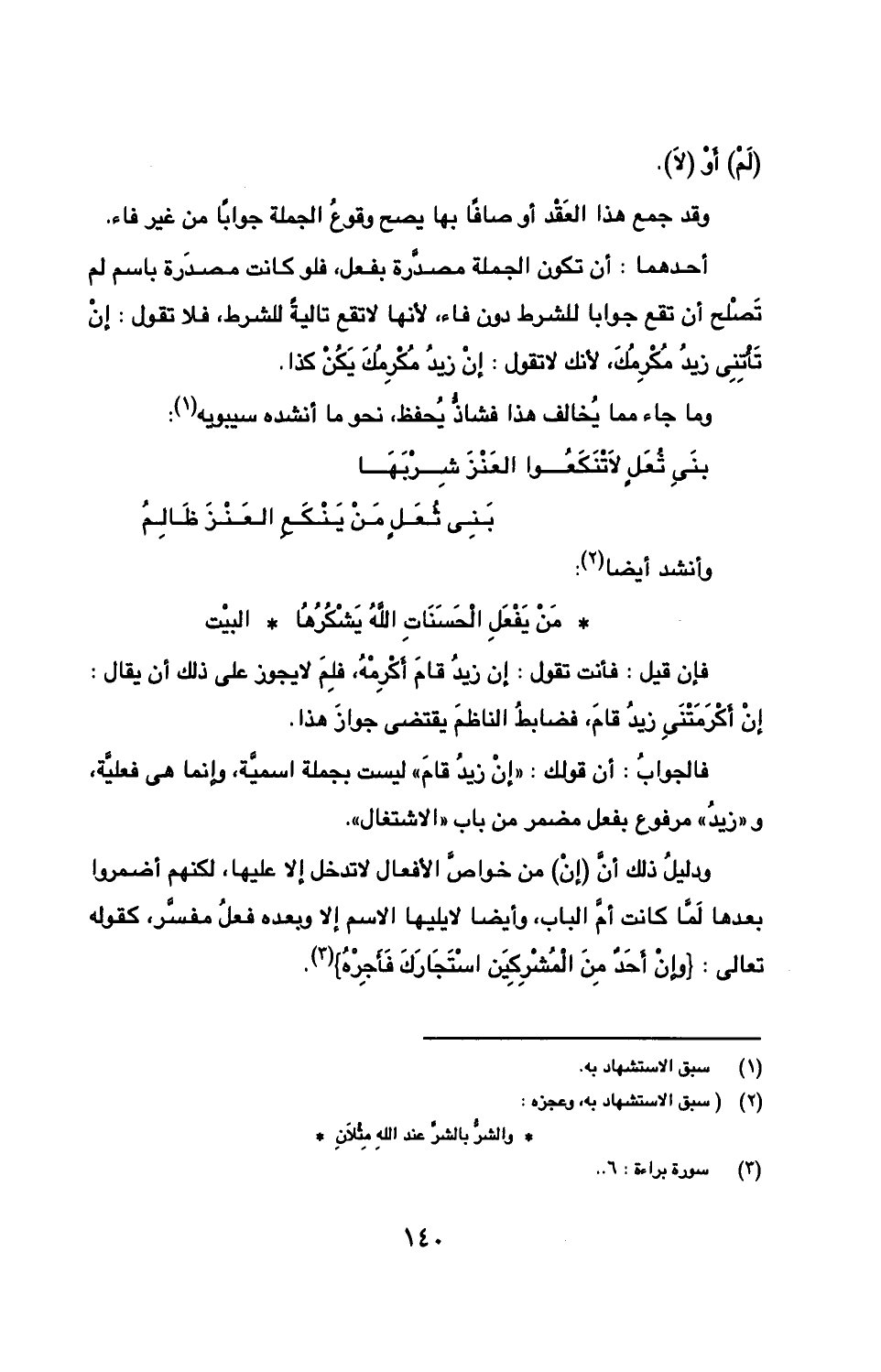 ودليل ذلك أن (إن) من خواص الأفعال لا تدخل إلا عليها، لكنهم أضمروا بعدها لما كانت أم الباب، وأيضا لا يليها الاسم إلا وبعده فعل مفسر، كقوله تعالى: } وإن أحد من المشركين استجارك فأجره}.