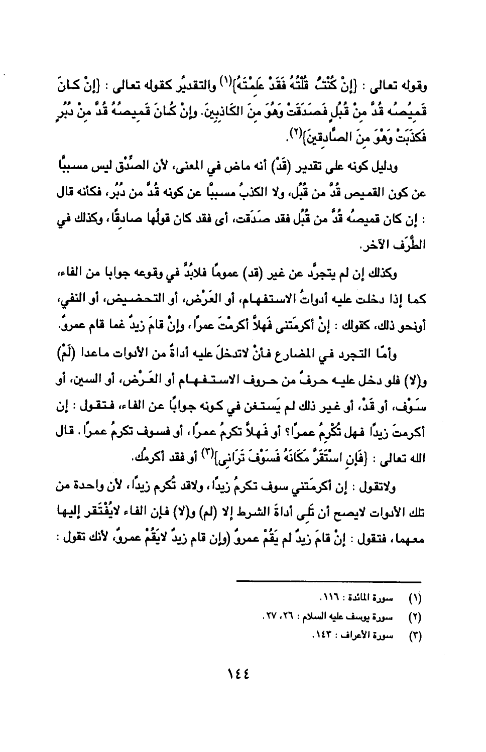 وقوله تعالى: } إن كنت قلته فقد علمته} والتقدير كقوله تعالى: } إن كان قميصه قد من قبل فصدقت وهو من الكذابين. وإن كان قميصه قد من دبر فكذبت وهو من الصادقين}.