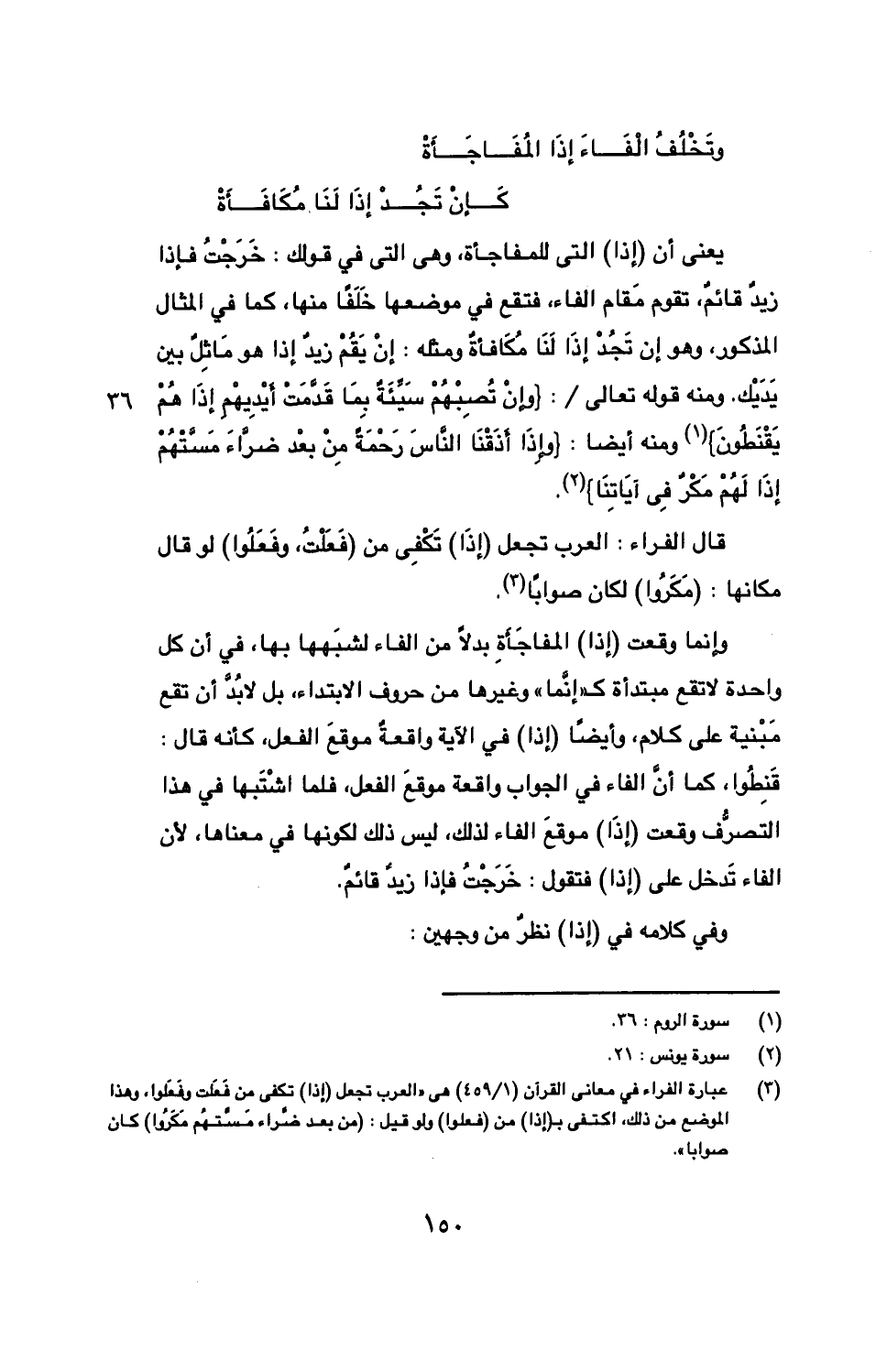 وإنما وقعت (إذا) المفاجأة بدلا من الفاء لشبهها بها، في أن كل واحدة لا تقع مبتدأة ك "غنما" وغيرها من حروف الابتداء، بل لا بد أن تقع مبنية على كلام، وأيضا (إذا) في الآية واقعة موقع الفعل، كأنه قال: قنطوا، كما أن الفاء في الجواب واقعة موقع الفعل، فلما اشتبها في هذا التصرف وقعت (إذا) موقع الفاء لذلك، ليس ذلك لكونها في معناها، لأن الفاء تدخل على (إذا) فتقول: خرجت فإذا زيد قائم.