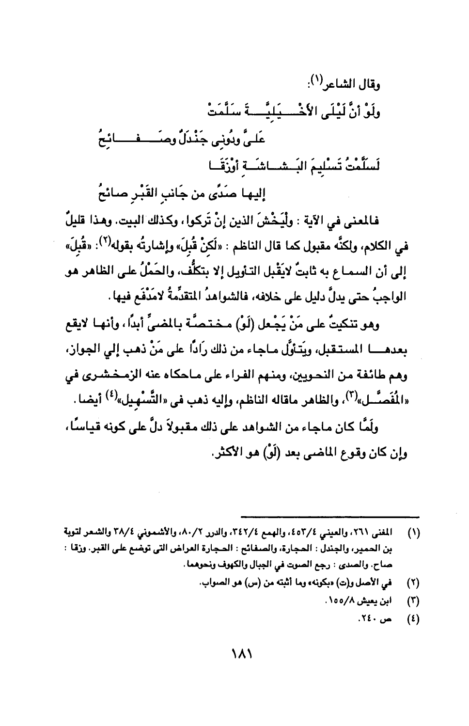 ولما كان ما جاء من الشواهد على ذلك مقبولا دل على كونه قياسا، وإن كان وقوع الماضي بعد (لو) هو الأكثر.