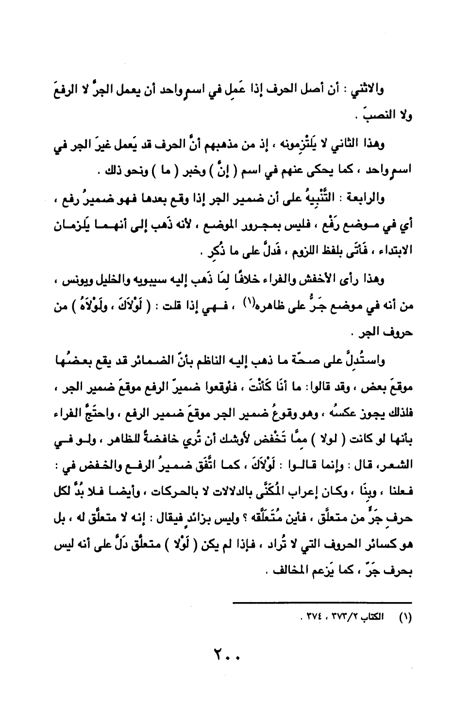 وهذا الثاني لا يلتزمونه، إذ من مذهبهم أن الحرف قد يعمل غير الجر في اسم واحد، كما يحكي عنهم في اسم (إن) وخبر (ما) ونحو ذلك.