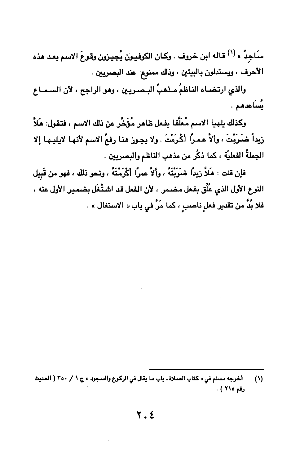 وكذلك يلهيا الاسم معلقا بفعل ظاهر مؤخر عن ذلك الاسم، فتقول: هلا زيدا ضربت، وألا عمرا أكرمت. ولا يجوز هنا رفع الاسم لأنها لا يليها إلا الجملة الفعلية، كما ذكر من مذهب الناظم والبصريين.