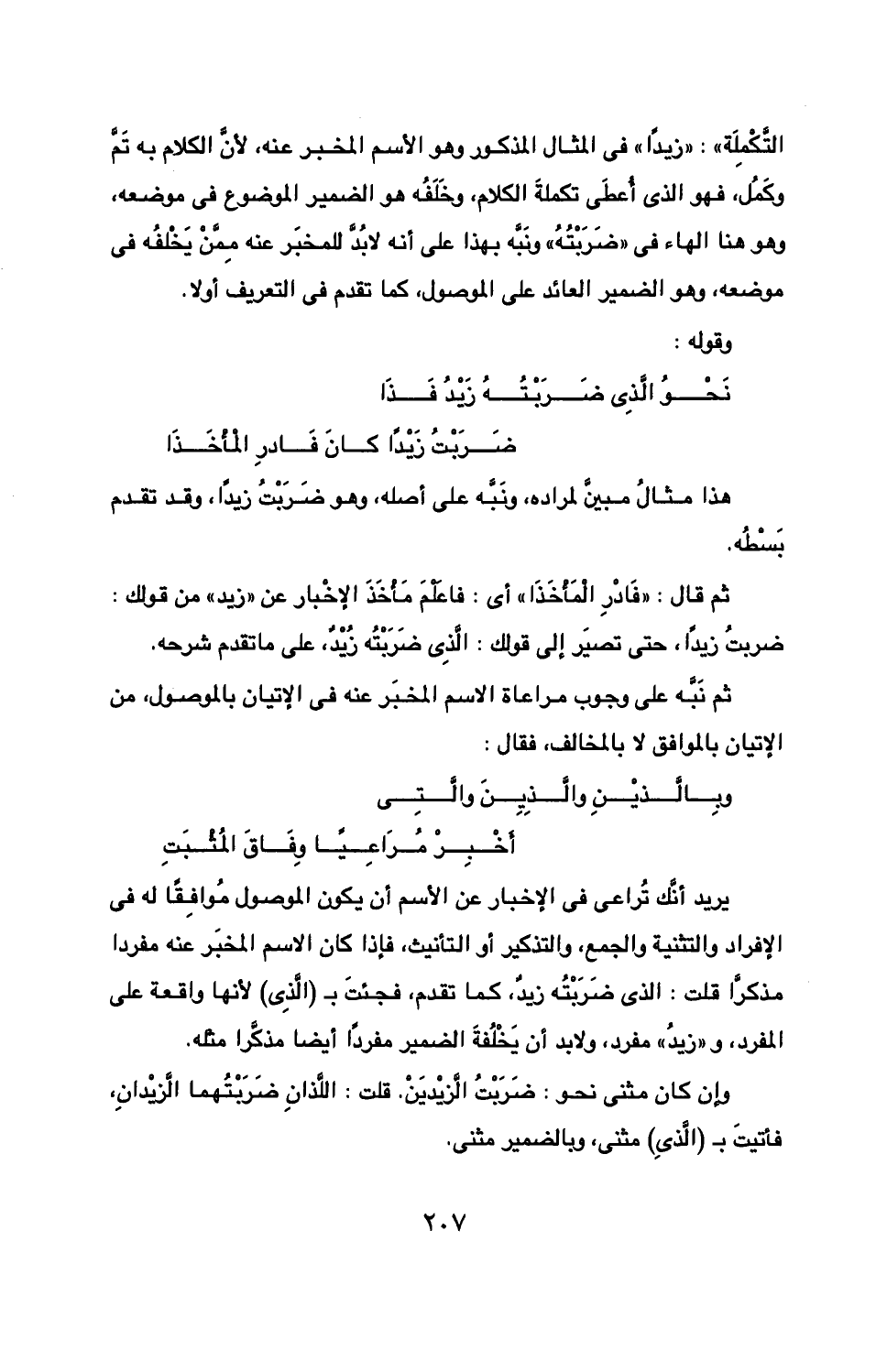 ثم نبه على وجوب مراعاة الاسم المخبر عنه في الإتيان بالموصول، من الإتيان بالموافق لا بالمخالف، فقال: