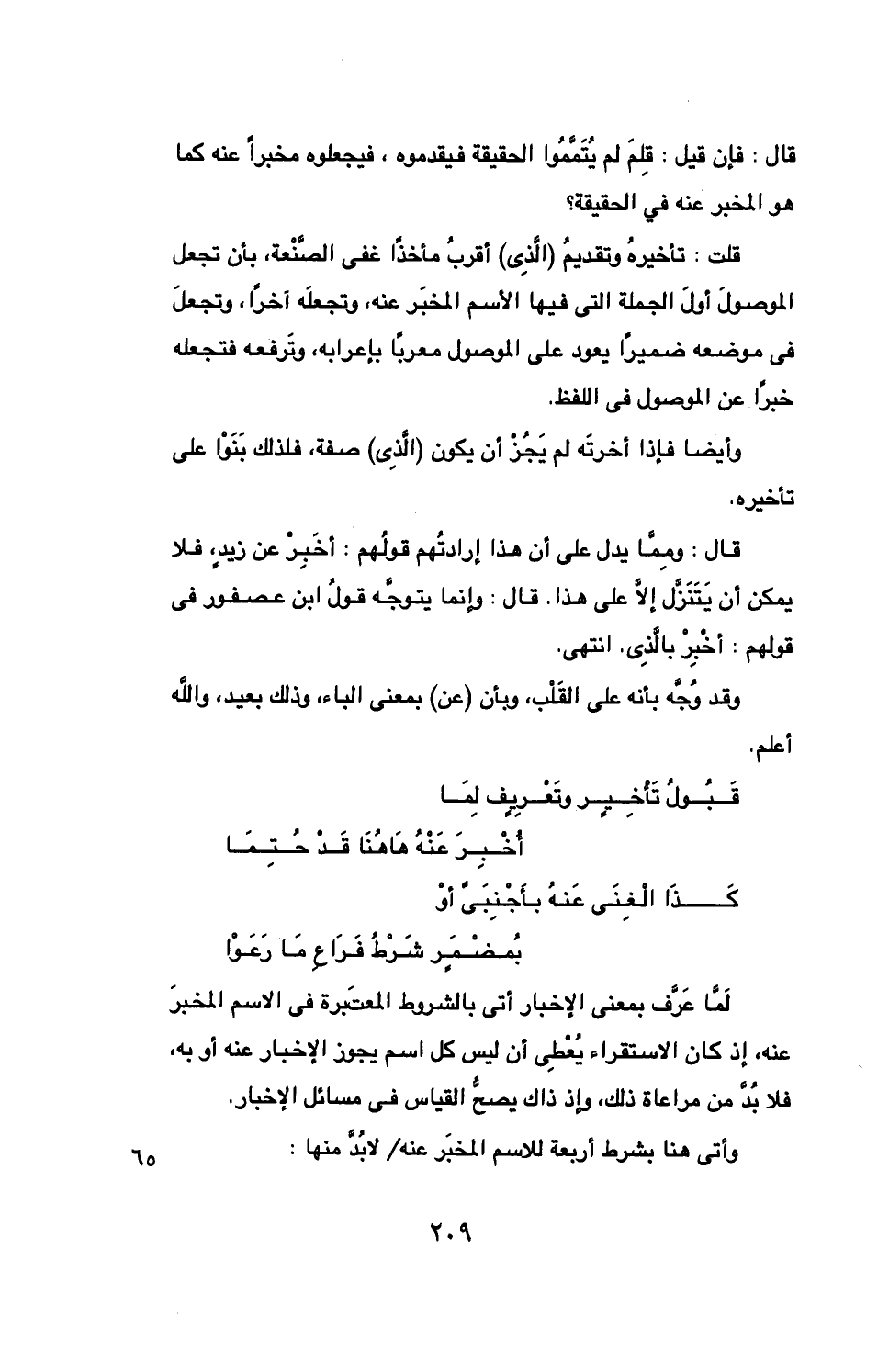لما عرف بمعنى الإخبار أتى بالشروط المعتبرة في الاسم المخبر عنه، إذ كان الاستقراء يعطي أن ليس كل اسم يجوز الأخبار عنه أو به، فلا بد من مراعاة ذلك، وإذ ذاك يصح القياس في مسائل الإخبار.