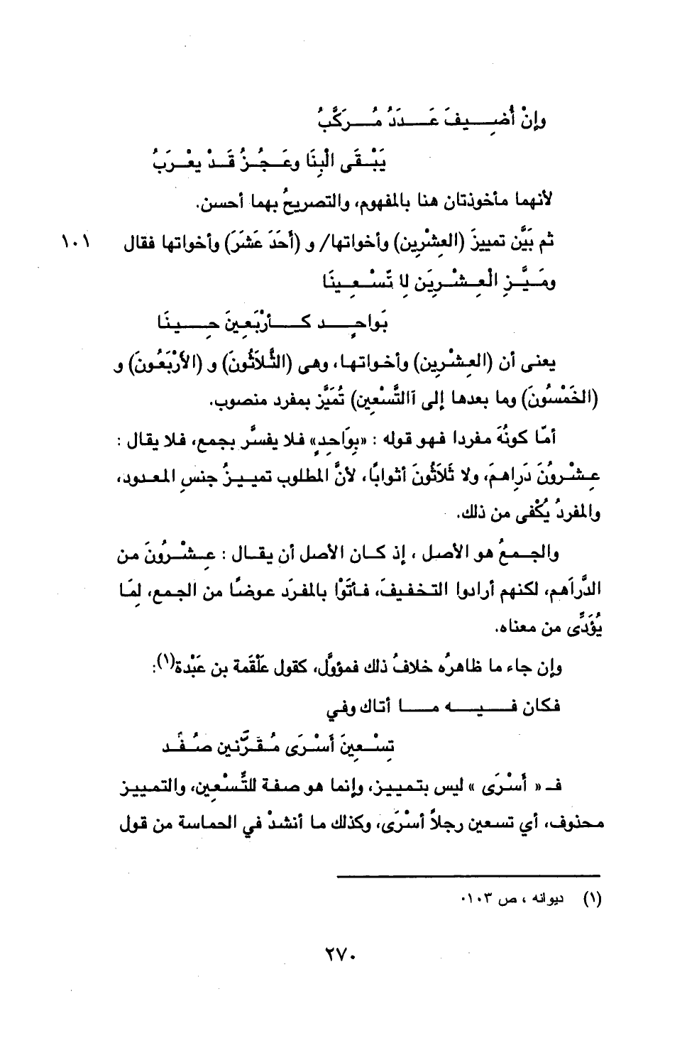 وميز العشرين لا تسعينا ... بواحد كأربعين حينا.