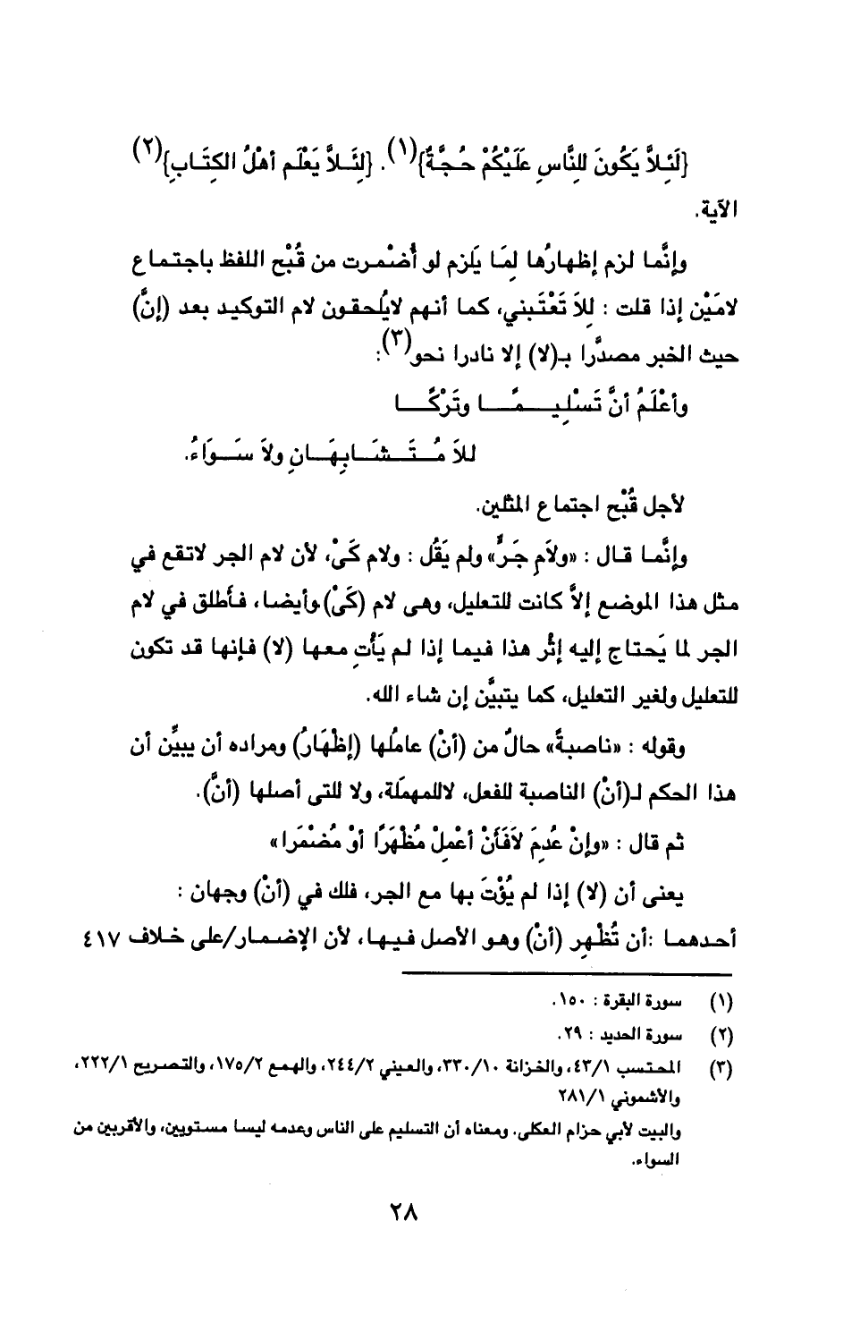 } لئلا يكون للناس عليكم حجة}.} لئلا يعلم أهل الكتاب} الآية.