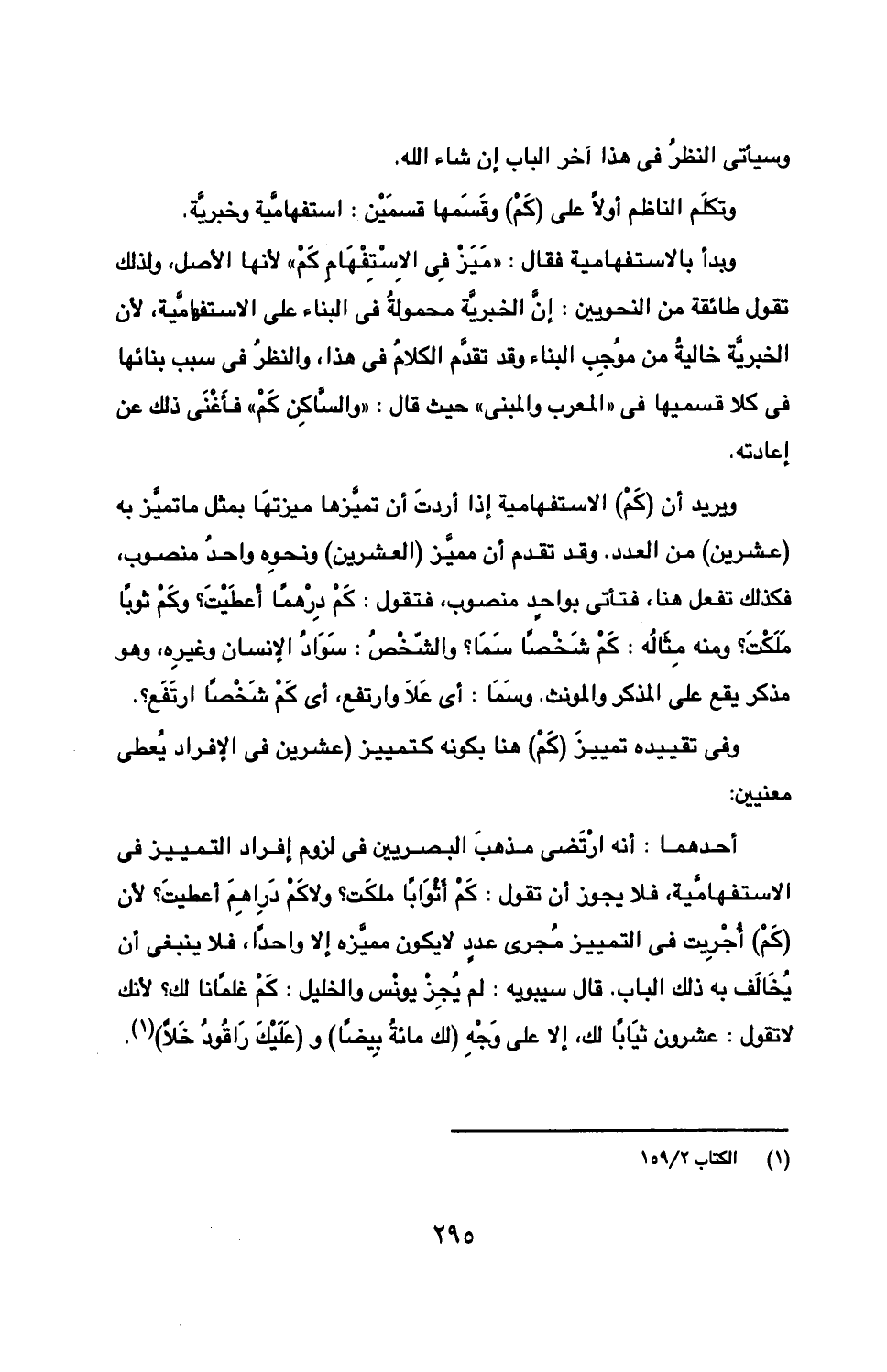 وتكلم الناظم أولا على (كم) وقسمها قسمين: استفهامية وخبرية.