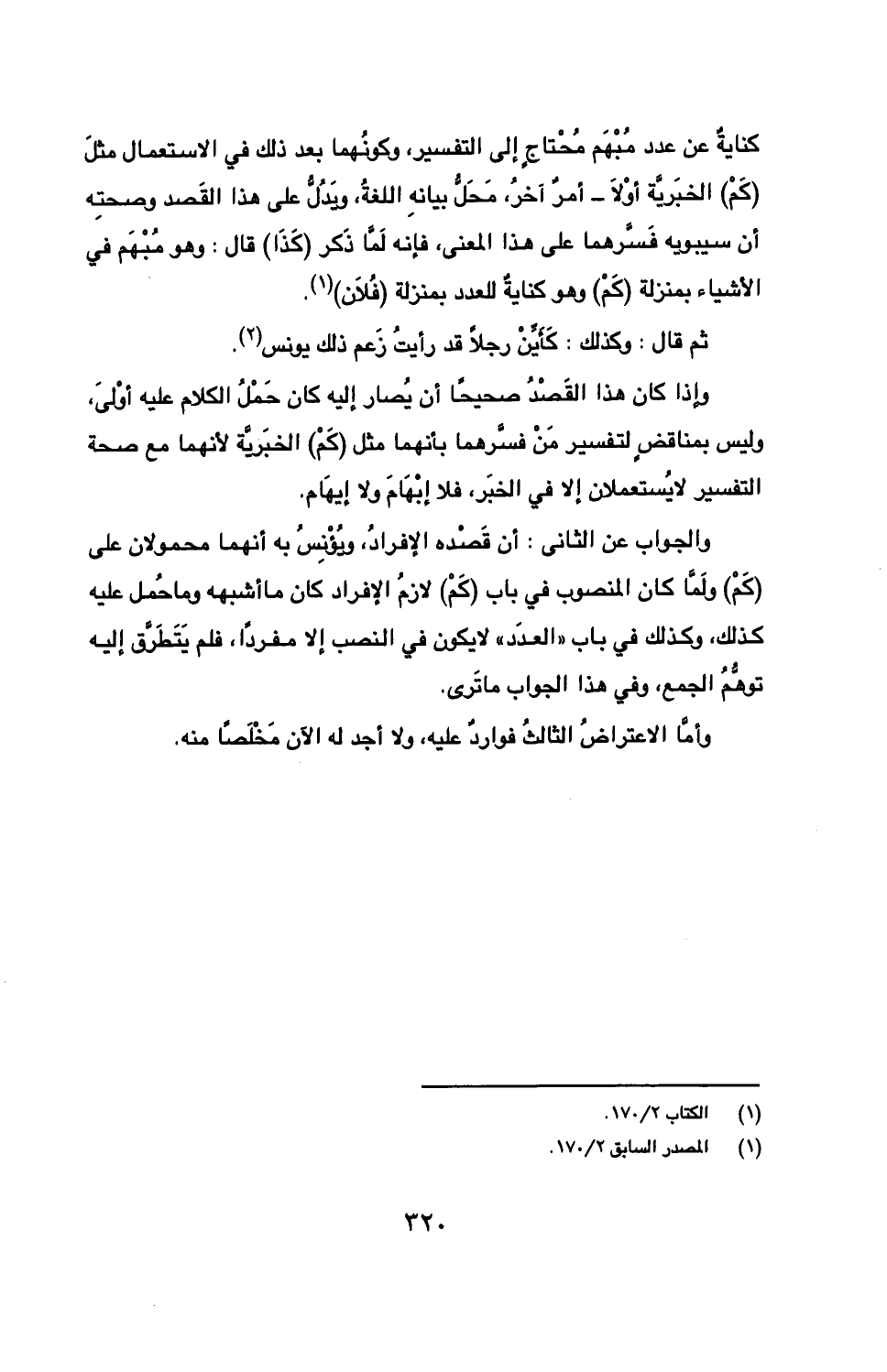 والجواب عن الثاني: أن قصده الإفراد، ويؤنس به أنهما محمولان على (كم) ولما كان المنصوب في باب (كم) لازم الإفراد كان ما أشبهه وما حمل عليه كذلك، وكذلك في باب "العدد" لا يكون في النصب إلا مفردًا، فلم يتطرق إليه توهم الجمع، وفي هذا الجواب ما ترى.
