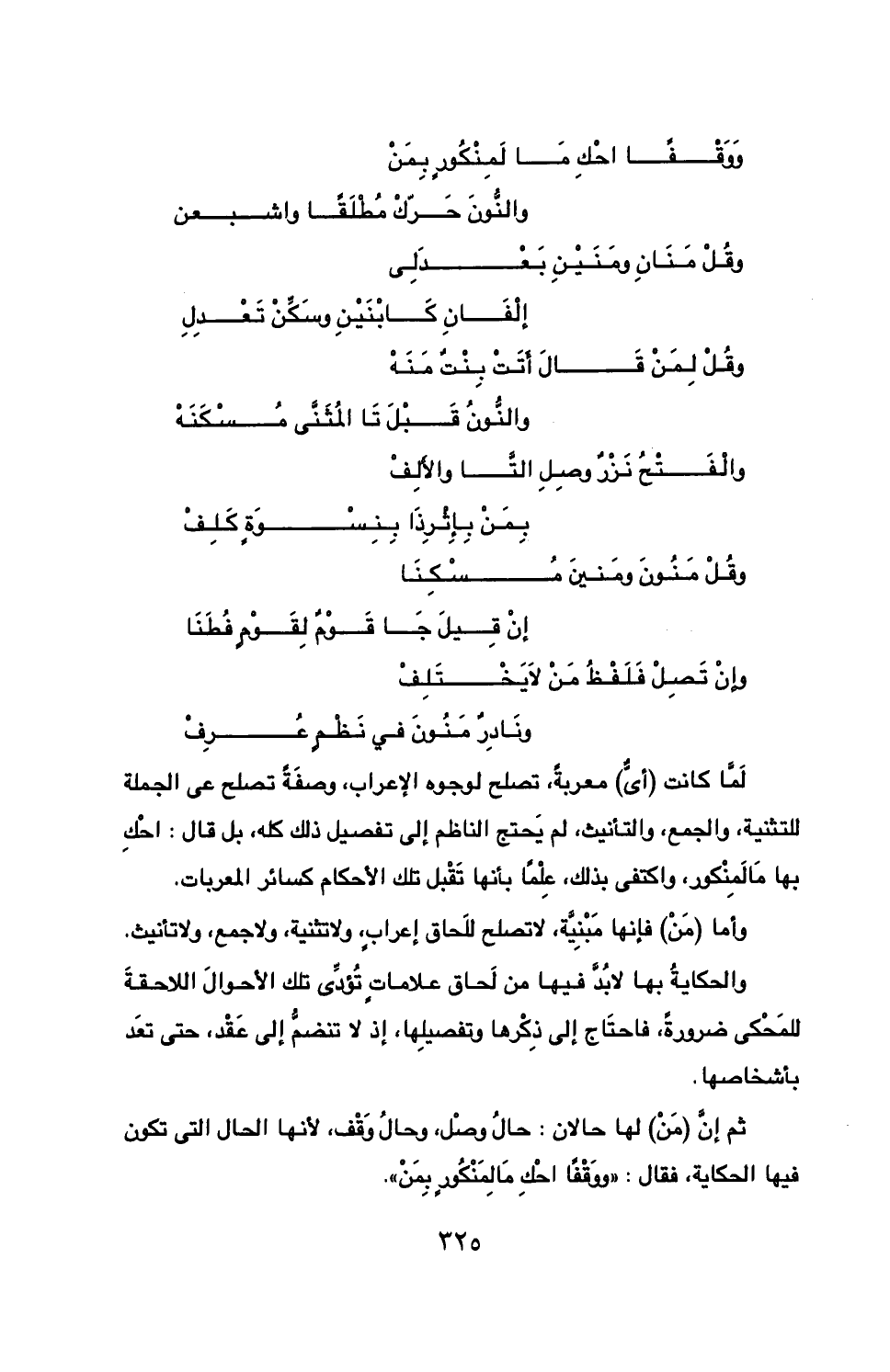 ووقفًا احك ما لمنكور بمن ... والنون حرك مطلقًا واشبعن