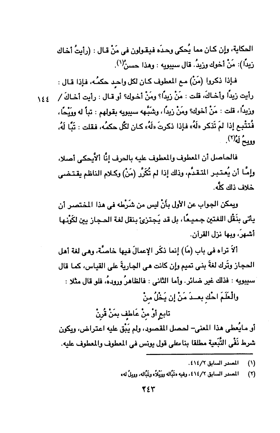 الحكاية، وإن كان مما يُحكى وحده فيقولون في من قال: (رأيت أخاك زيدًا): من أخوك وزيد. قال سيبويه: وهذا حسن.