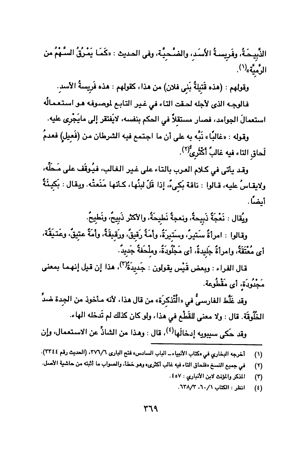 ويقال: نعجة ذبيحة، ونعجة نطيحة، والأكثر ذبيح، ونطيح.