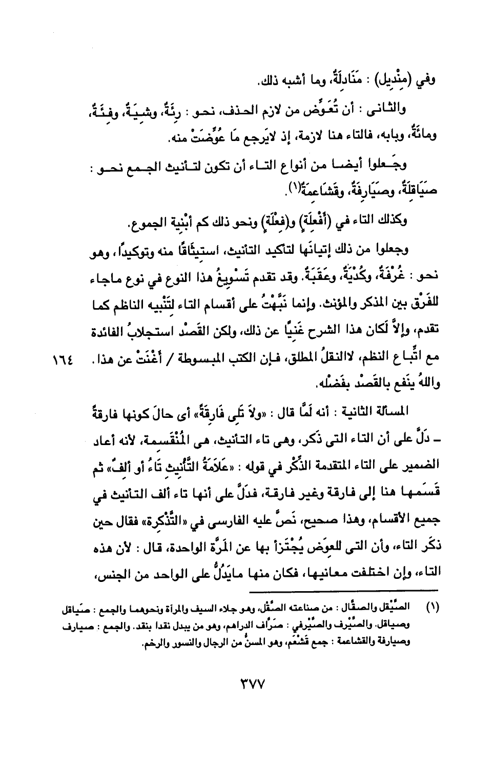 وجعلوا أيضًا من أنواع التاء أن تكون لتأنيث الجمع نحو: صياقلة، وصيارفة، وقشاعمة.