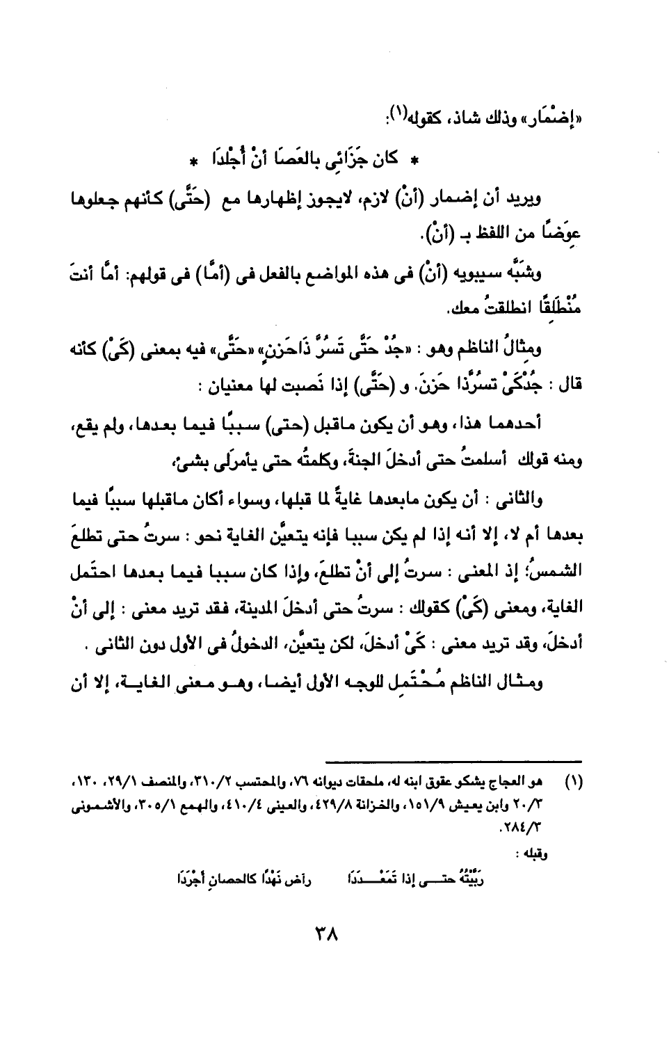 ومثال الناظم محتمل للوجه الأول أيضا، وهو معنى الغاية، إلا أن