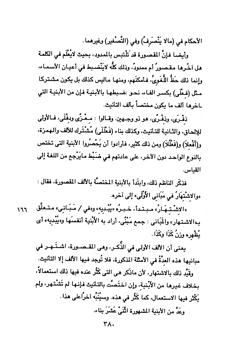 فذكر الناظم ذلك، وابتدأ بالأبنية المختصة بالألف المقصورة، فقال "والاشتهار في مباني الأولى" إلى آخره.