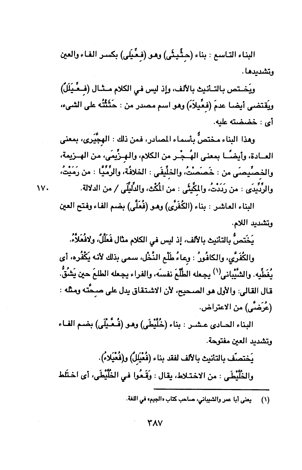 البناء الحادي عشر: بناء (خليطى) وهو (فعيلى) بضم الفاء وتشديد العين المفتوحة.