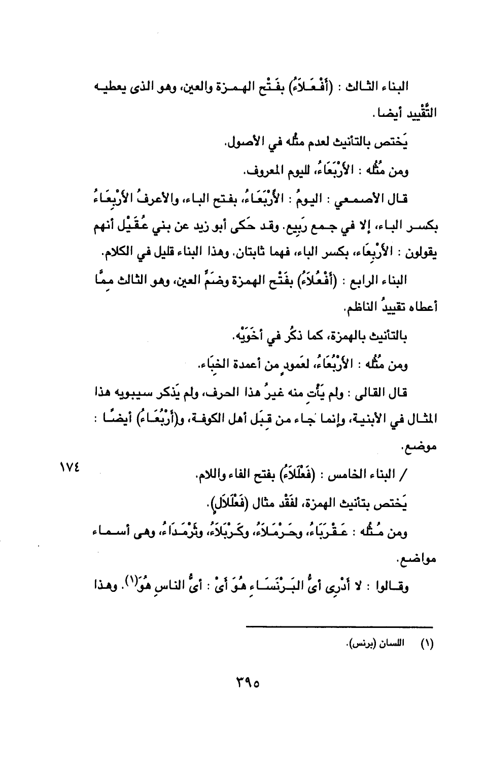 البناء الرابع: (أفعلاء) بفتح الهمزة وضم العين، وهو الثالث مما أعطاه تقييد الناظم.